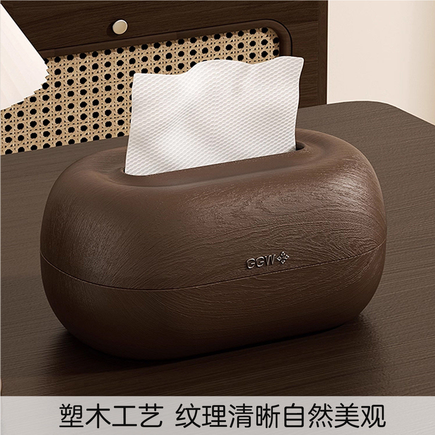 木纹纸巾盒家用客厅轻奢高档中古风抽纸盒高级感复古茶几收纳盒