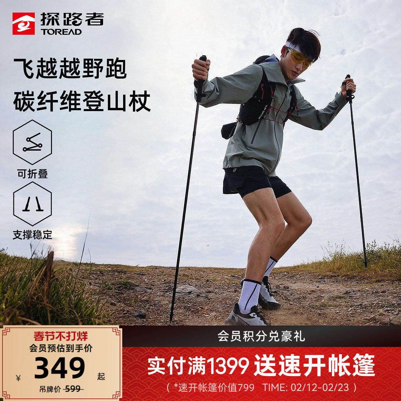 【飞越】探路者越野跑碳纤维登山杖轻量化可折叠户外徒步登山手杖