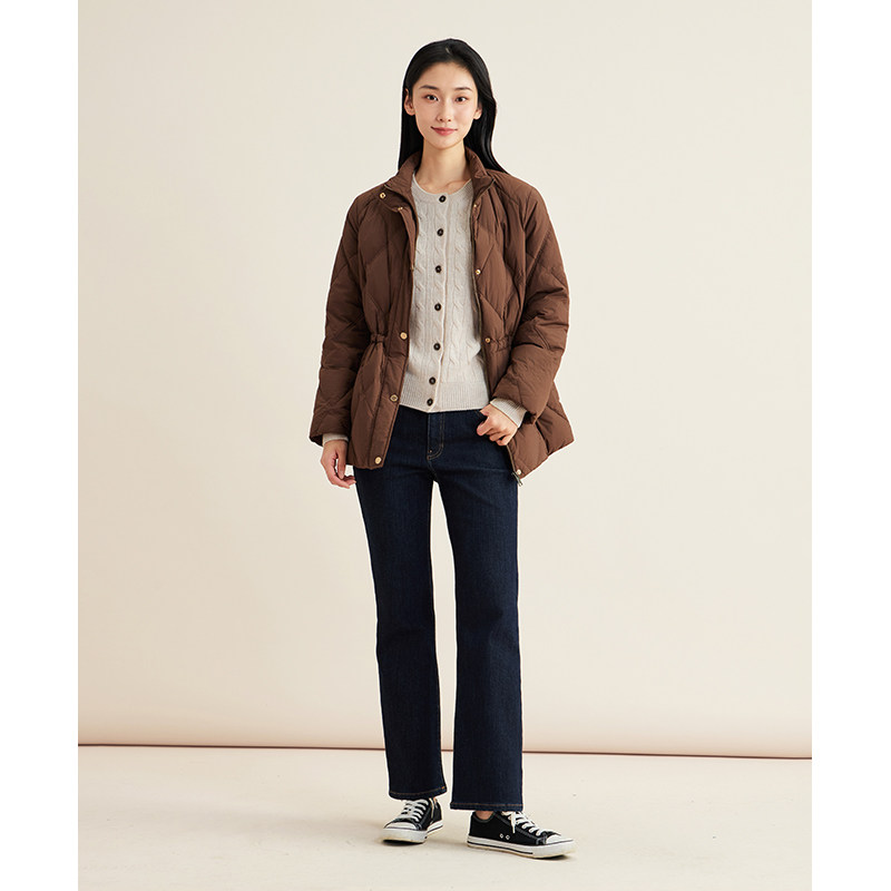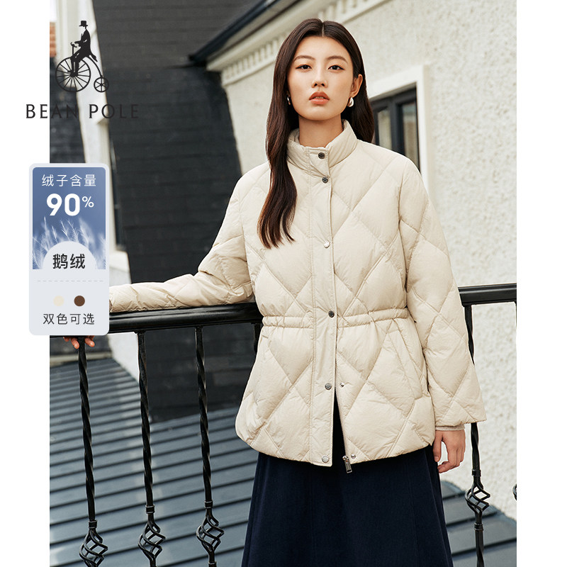 【新品】90%鹅绒BEANPOLE滨波秋冬女松弛感菱形格绗缝收腰羽绒服