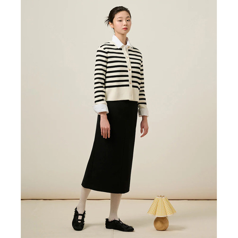 【新品】BEANPOLE滨波 春季女全棉甜美圆领撞色条纹针织长袖开衫