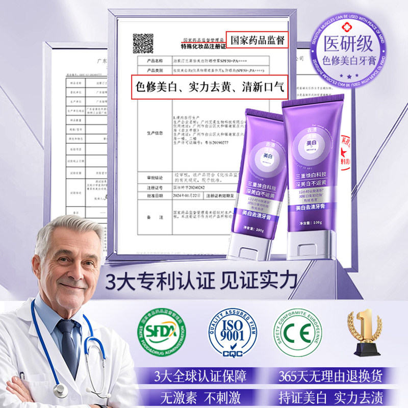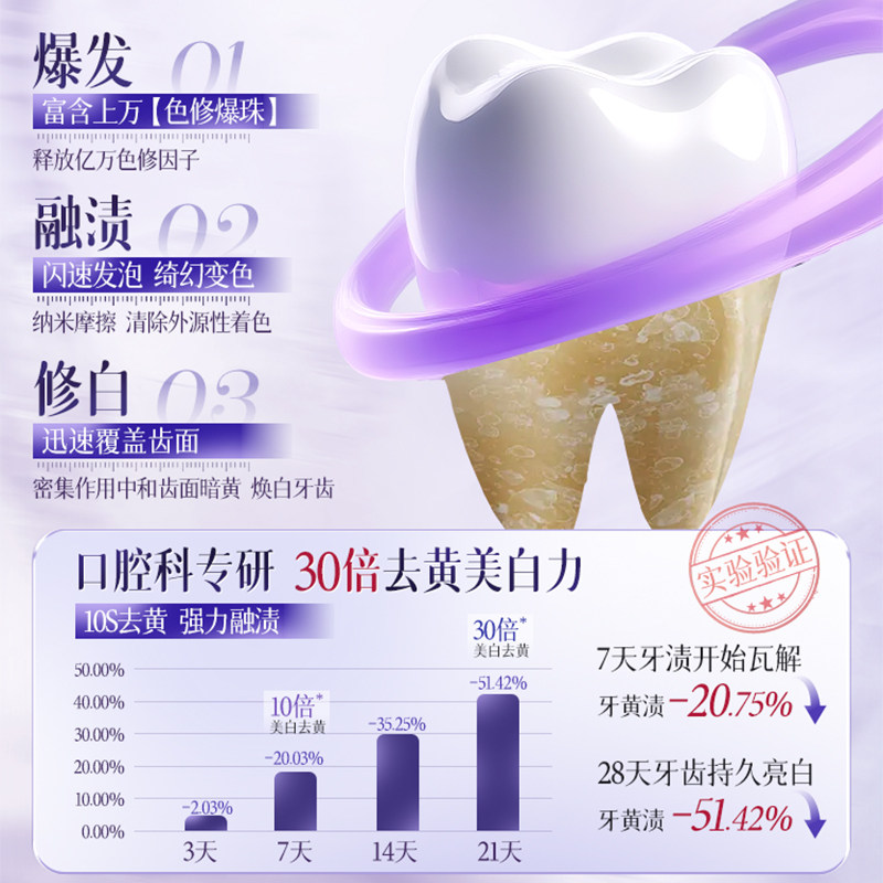 色修美白牙膏酵素去黄去口臭洗白口气清新成人官方正品牙齿紫光