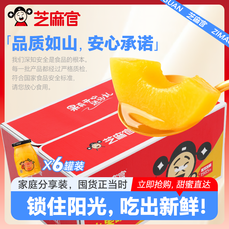 礼盒装芝麻官黄桃罐头258g*6罐中秋节礼盒送老人小孩整箱