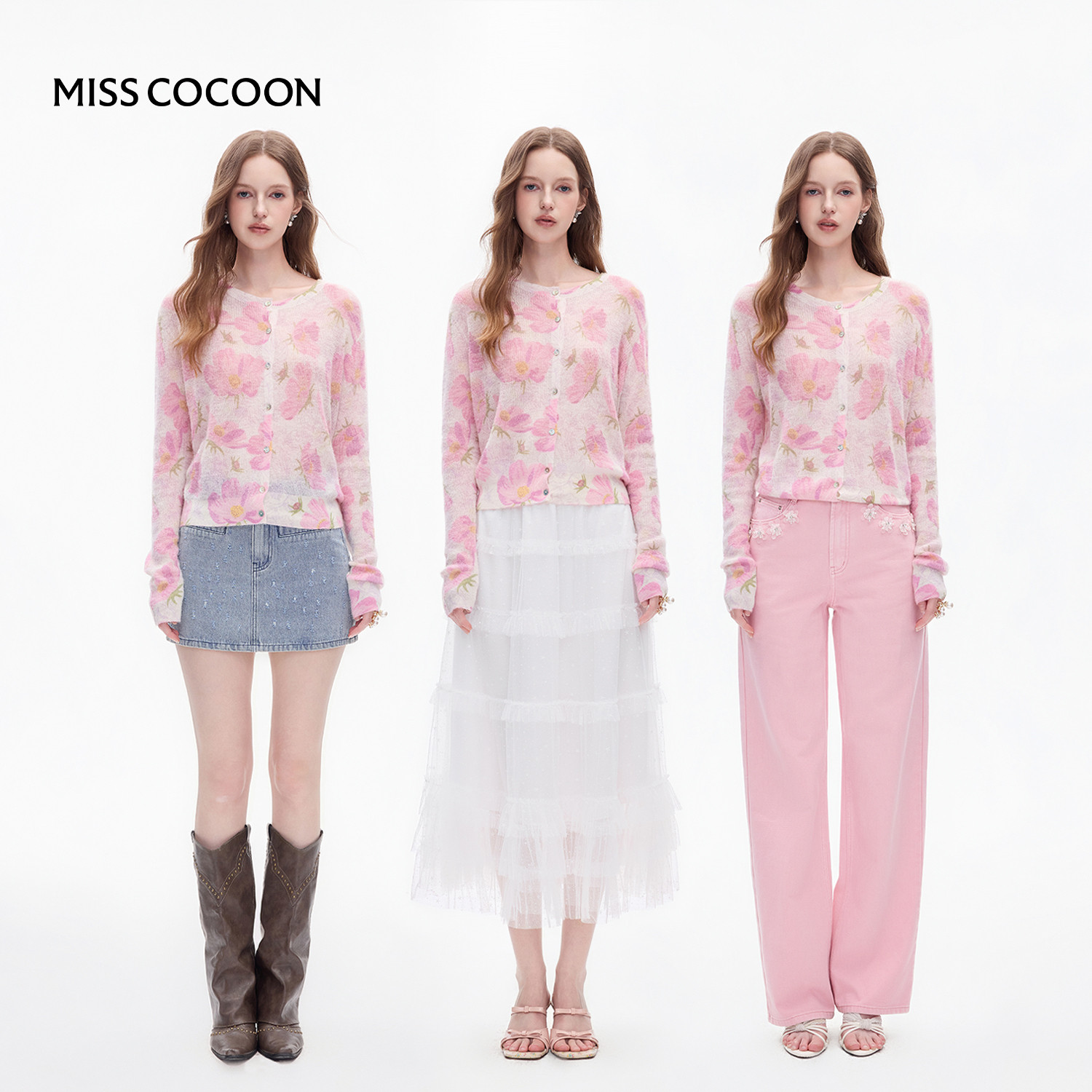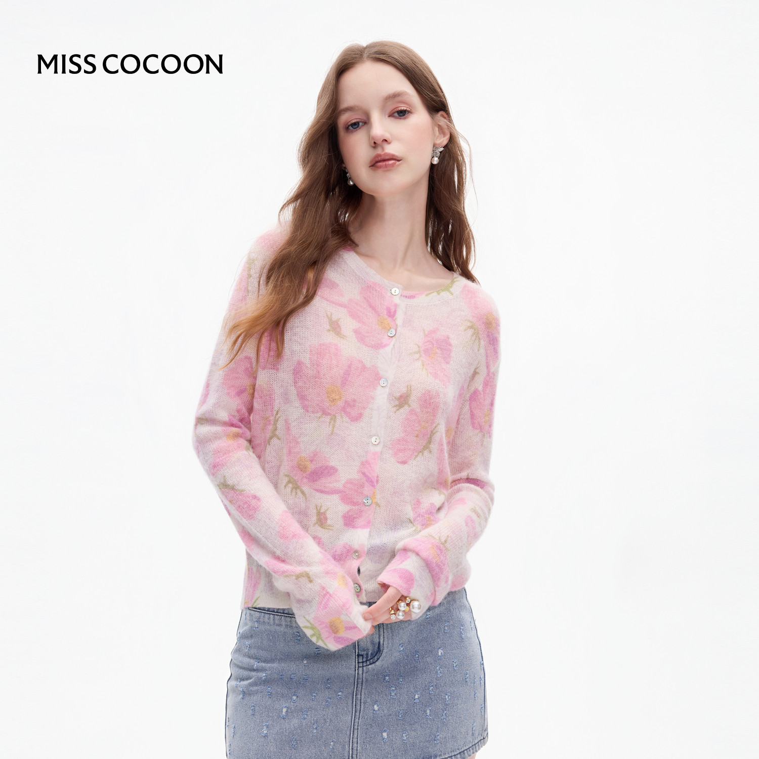 MISSCOCOON可可尼薄款长袖毛衫女2025秋季新款印花羊驼毛针织衫
