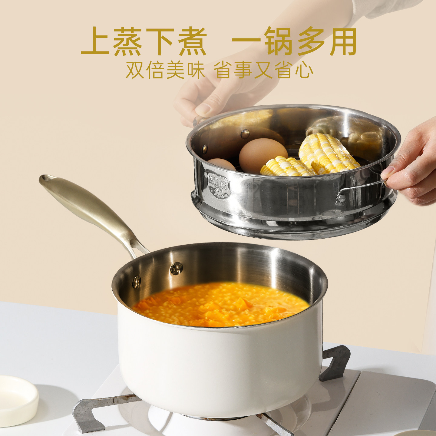 卡罗特奶锅不锈钢无涂层宝宝婴儿辅食锅蒸煮一体小汤锅家用煮面锅