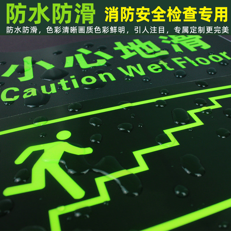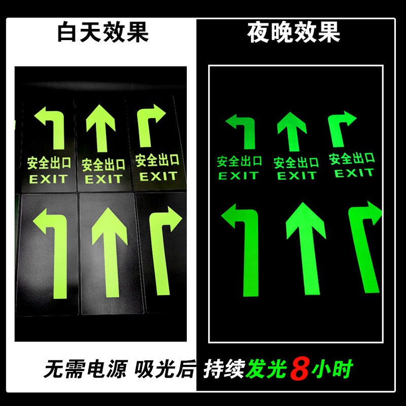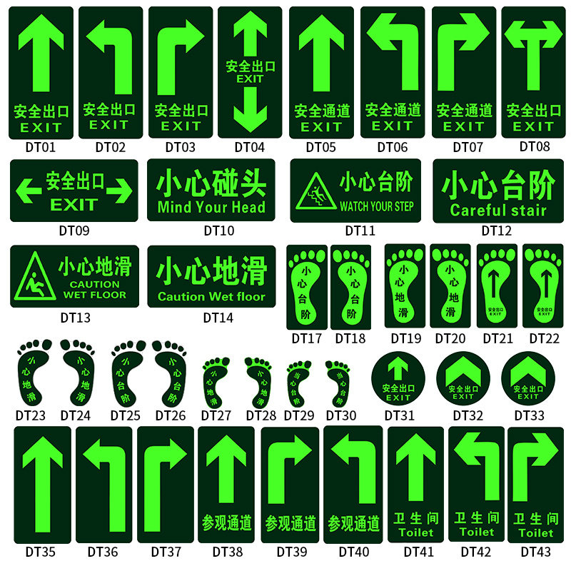 安全出口地贴夜光指示牌免接电标识贴纸楼梯参观安全通道紧急疏散标志小心台阶碰头地滑卫生间提示牌荧光耐磨