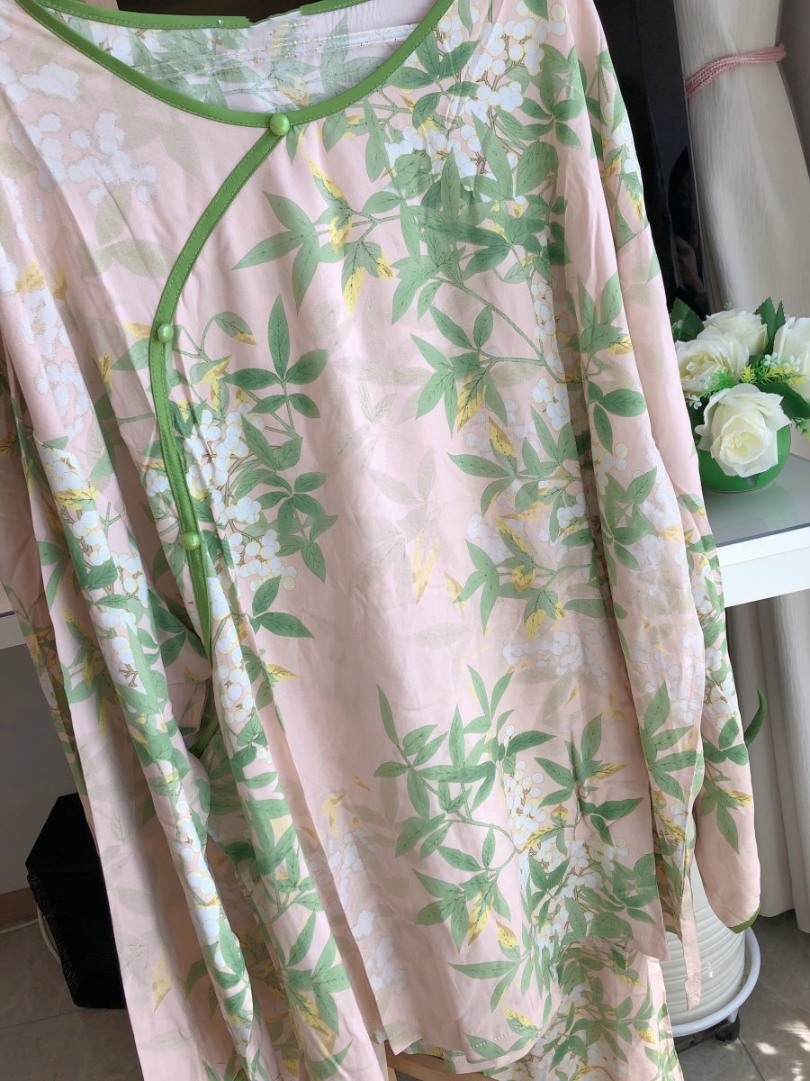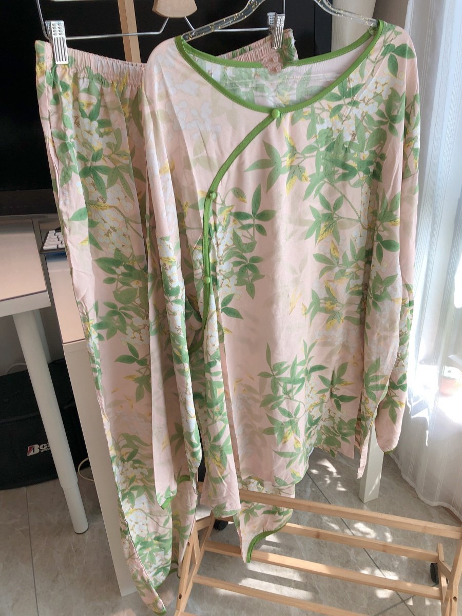200斤加肥大码复古国风睡衣女胖MM秋薄款棉绸长袖长裤树叶家居服