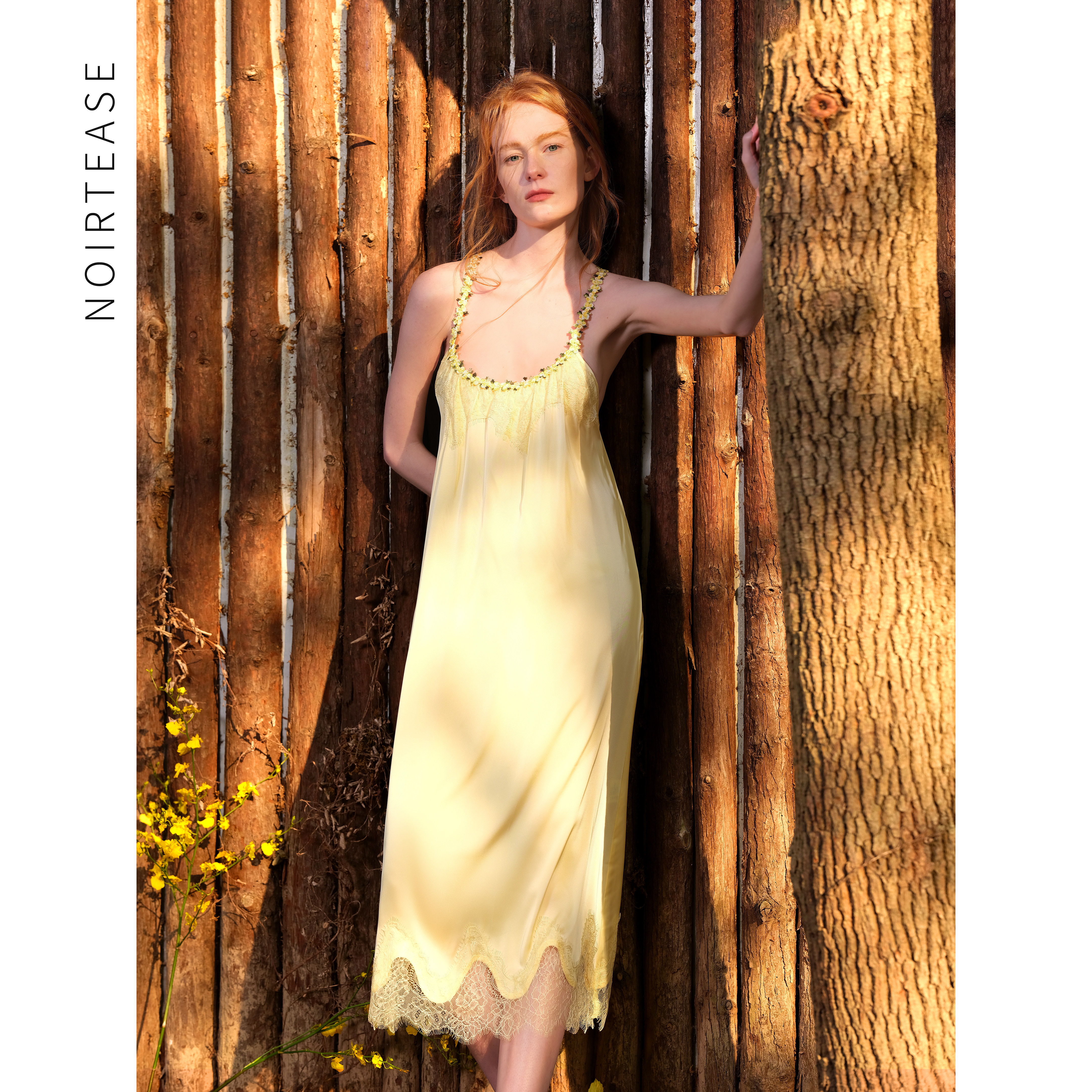 NoirTease春夏缎面薄款蕾丝长款吊带裙打底度假裙睡衣睡裙女外穿