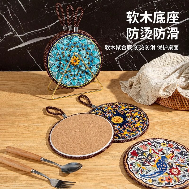 隔热垫陶瓷耐高温复古珐琅中式高级感餐桌防烫锅垫砂锅专用碗杯垫