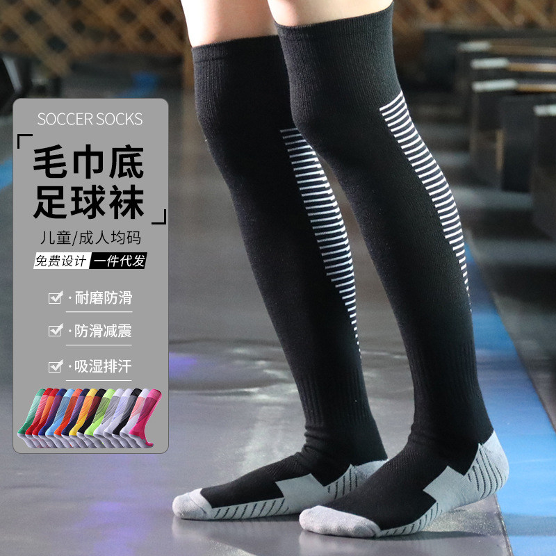毛巾底儿童足球袜男女运动袜子过膝专业透气高筒袜长筒红色白色