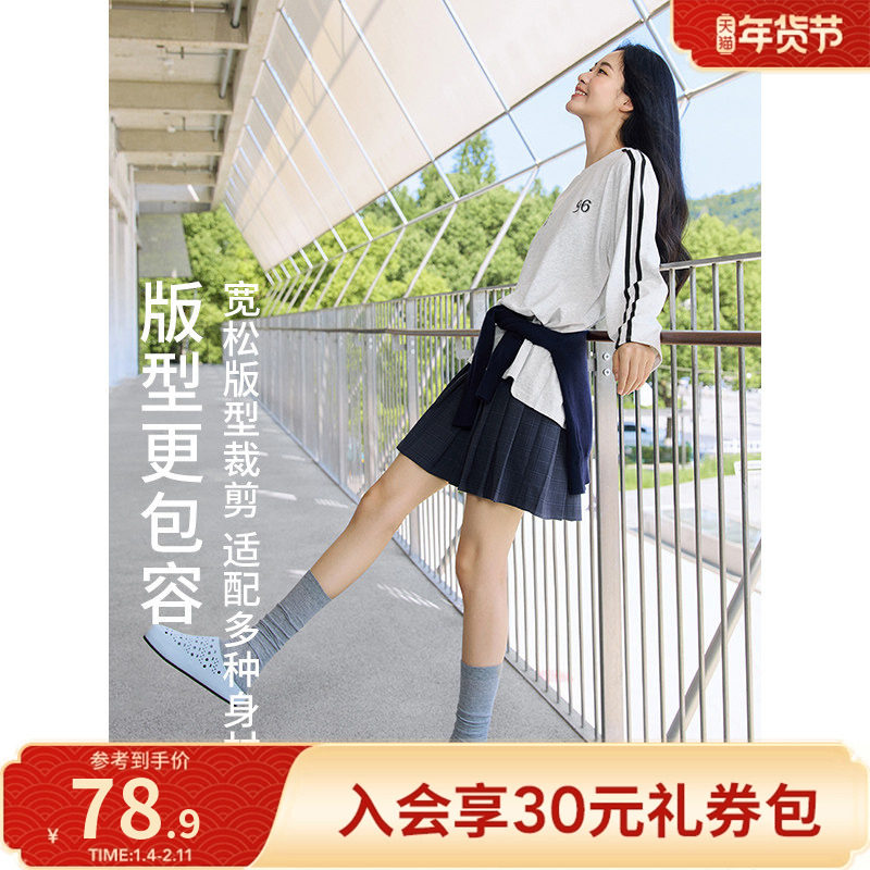 热风2025年秋季新款女士拼条长袖T恤纯棉柔软舒适轻氧感上衣