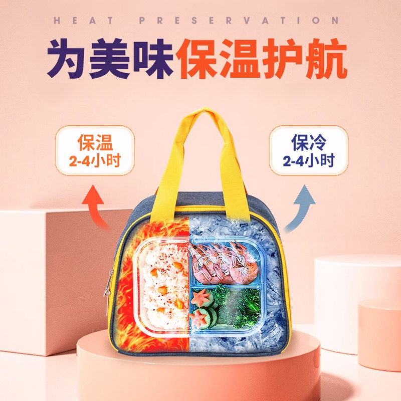 hugz饭盒袋小学生保温手提袋便当包通勤上学上班族便携午餐袋饭包