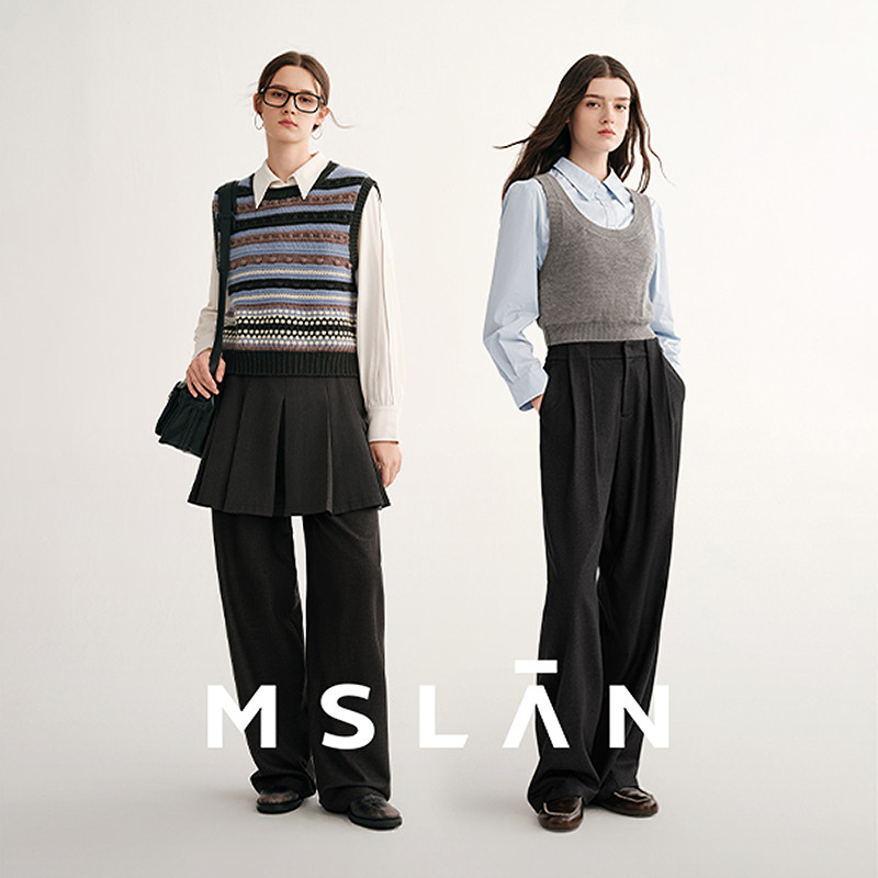 MSLAN智性通勤 26春松弛感松紧腰宽松阔腿裤西装裤休闲裤新品