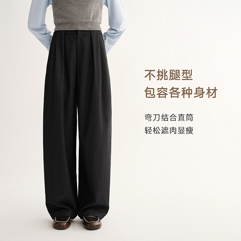 唐狮DESSO秋冬新款糯米裤高腰垂感宽松加绒直筒阔腿裤5