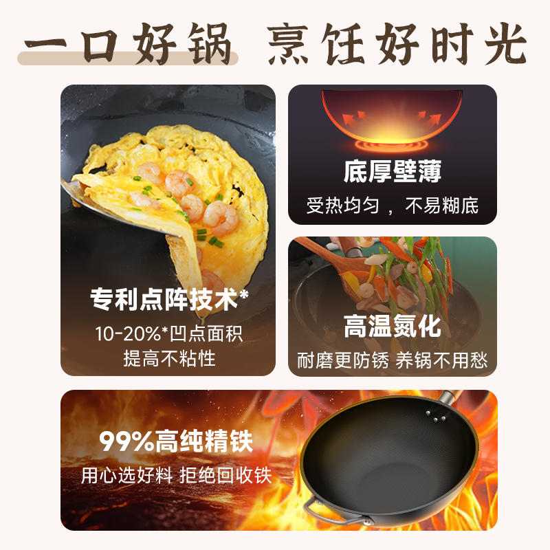 九阳铁锅无涂层炒锅家用炒菜锅不易粘锅电磁炉专用燃气灶旗舰店炊