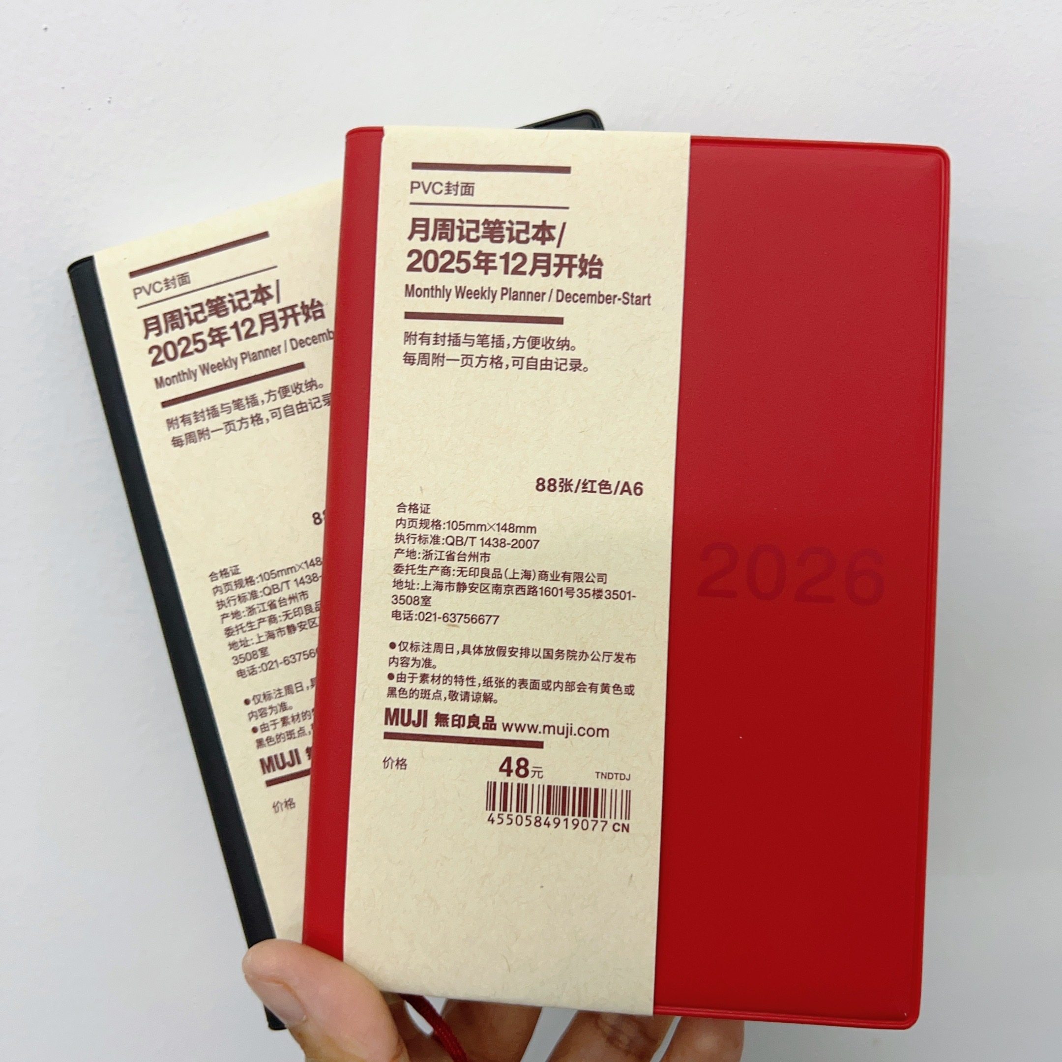 MUJI无印良品2026年口袋日程本手帐本横式月周计划年计划新年礼物