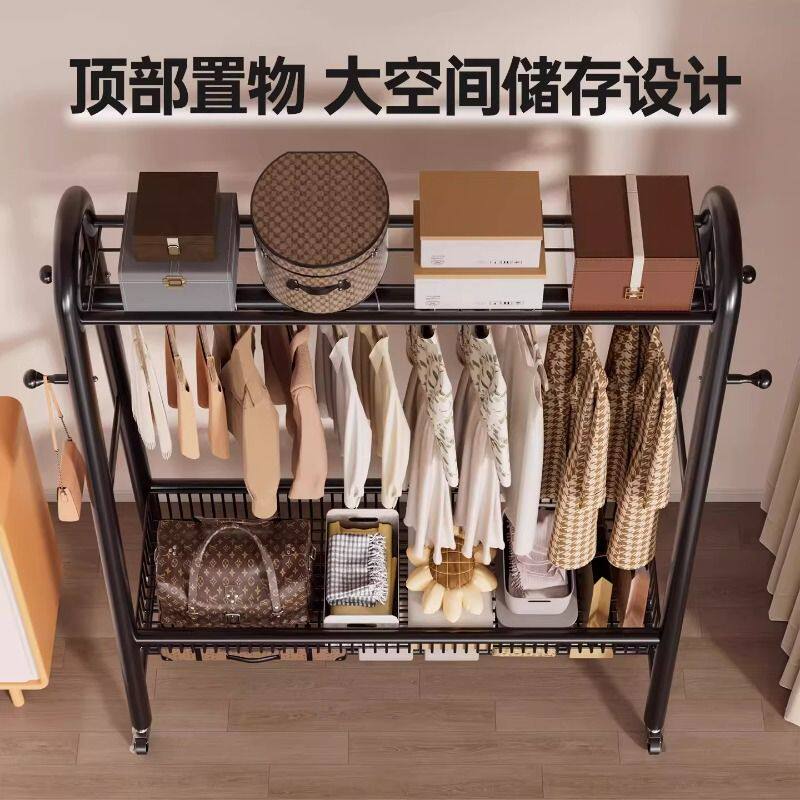 晾衣架落地家用可移动卧室凉衣架阳台挂衣服架子室内简易杆衣帽架
