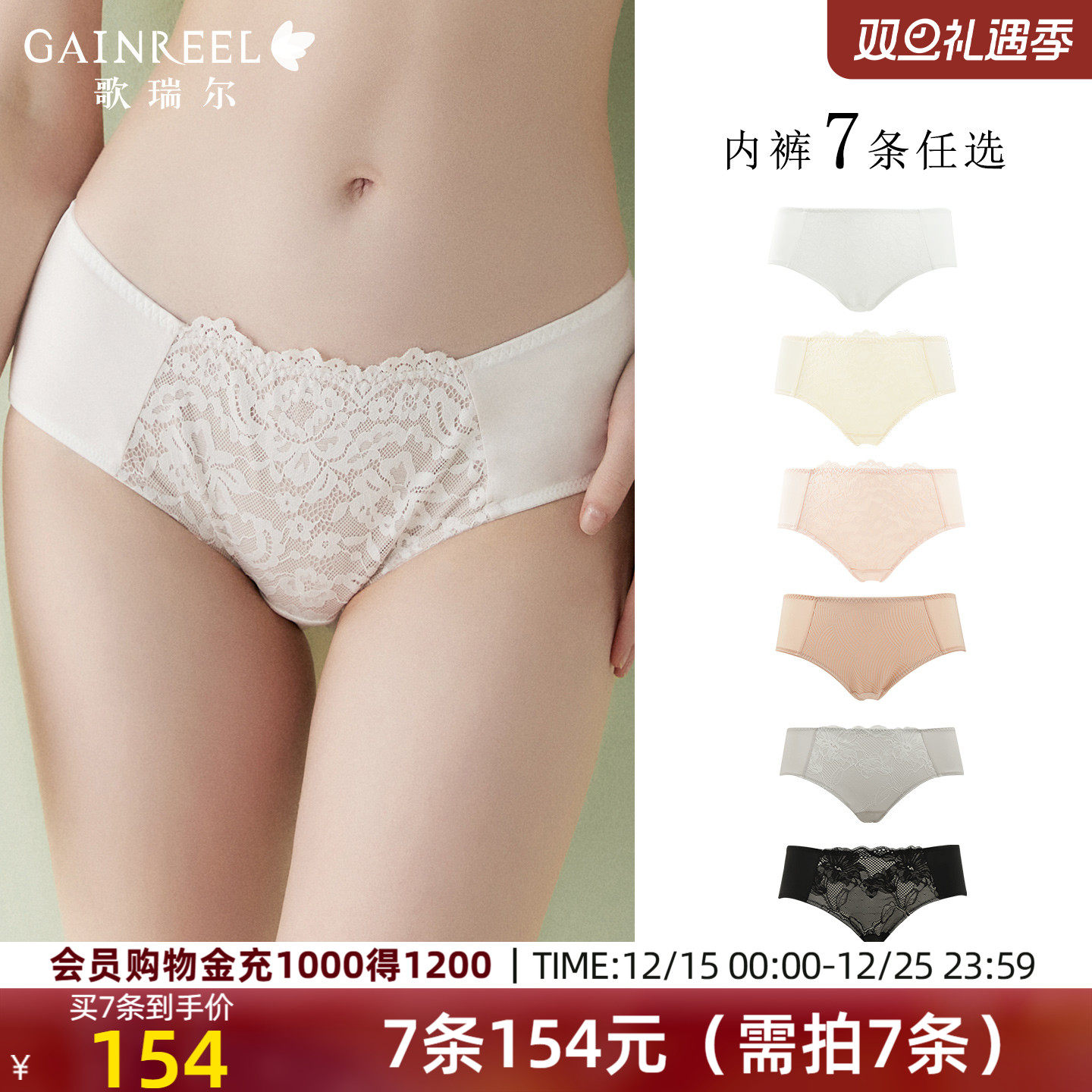 【154元起任选7条】歌瑞尔蕾丝内裤女新款性感中腰平角底裤多款