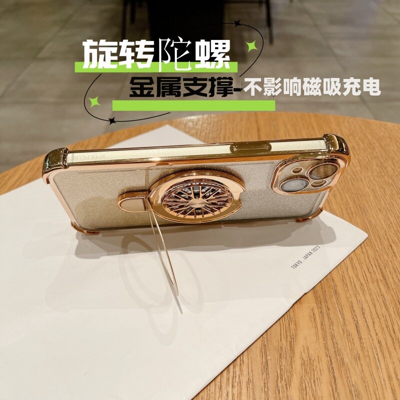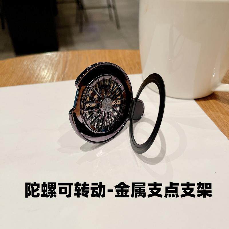 旋转陀螺手机支架解压粘贴式背贴不影响磁吸充电金属指环扣竖支稳