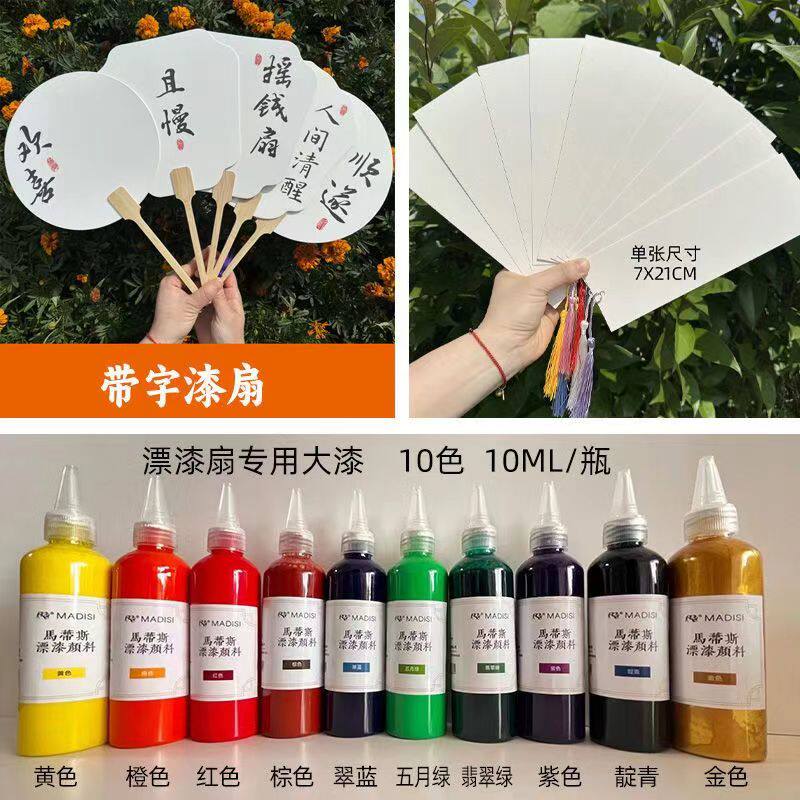非遗文创印字漆扇空白宣纸团扇漂漆专用扇子带字Diy大漆颜料套装