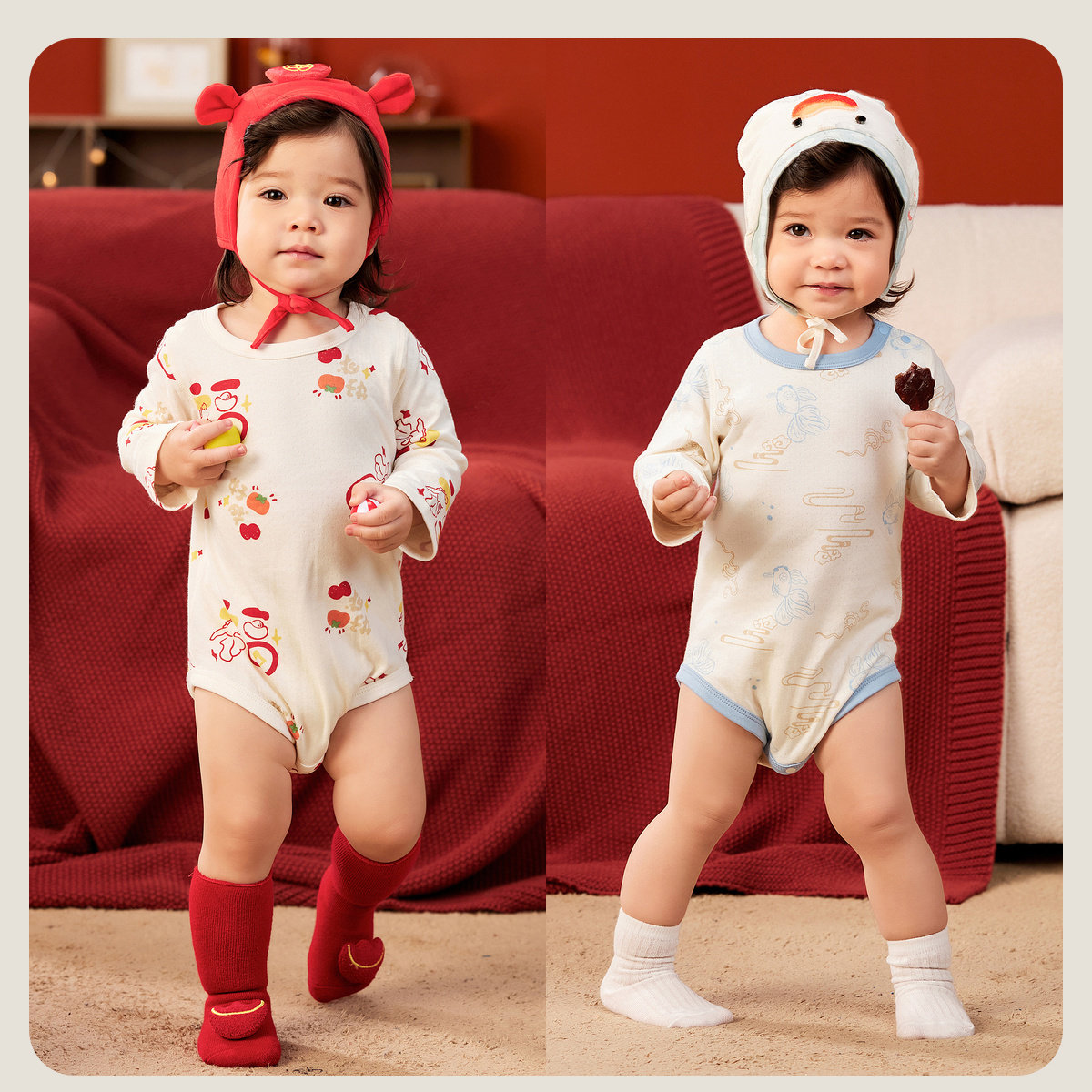迷你巴拉巴拉满月宝宝衣服纯棉三角衣新生儿红色婴儿周岁包屁衣