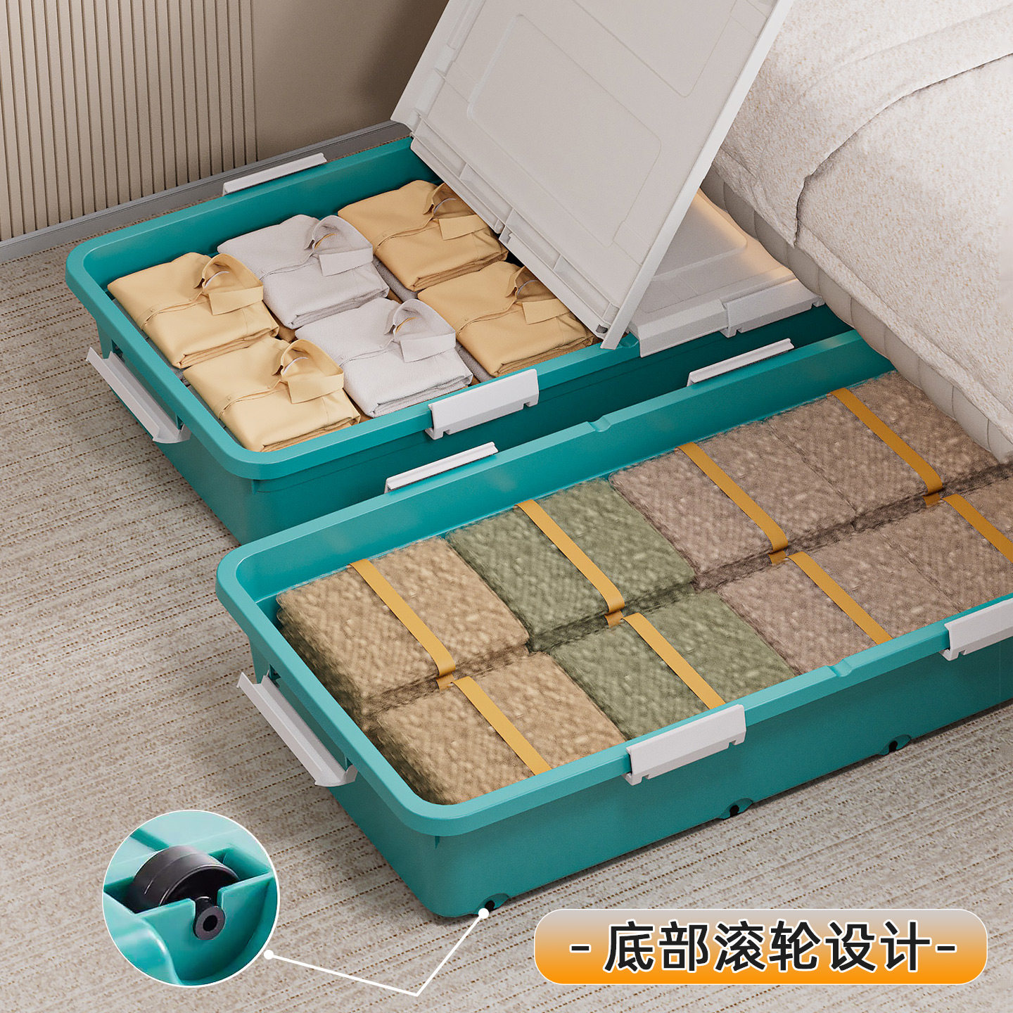 床底收纳箱带滑轮滚轮放床下大容量超大扁平衣服储物箱框鞋子玩具