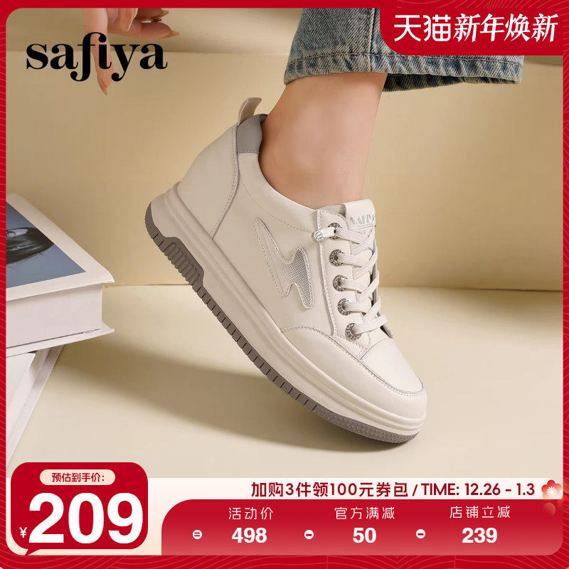 Safiya索菲娅2025春新款时尚百搭厚底内增高圆头系带休闲小白鞋女