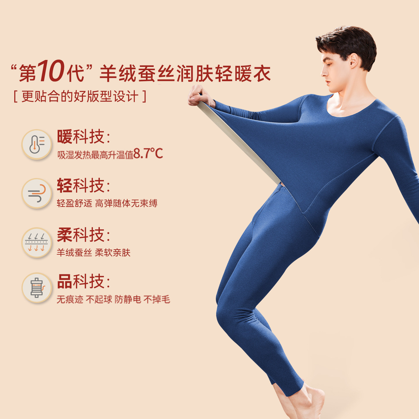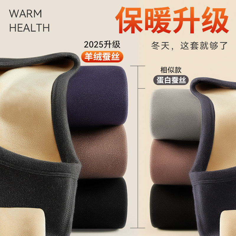 保暖内衣男款加绒加厚大码2025羊毛蚕丝秋衣秋裤套装羊绒黑色发热