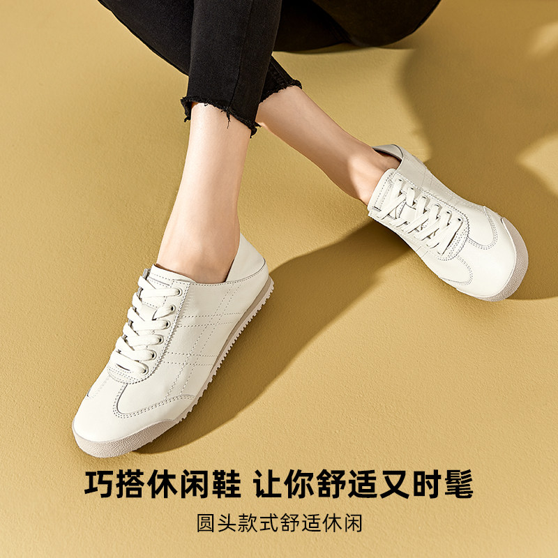 头层牛皮小白鞋女真皮舒适软底休闲运动鞋2025新款百搭德训鞋