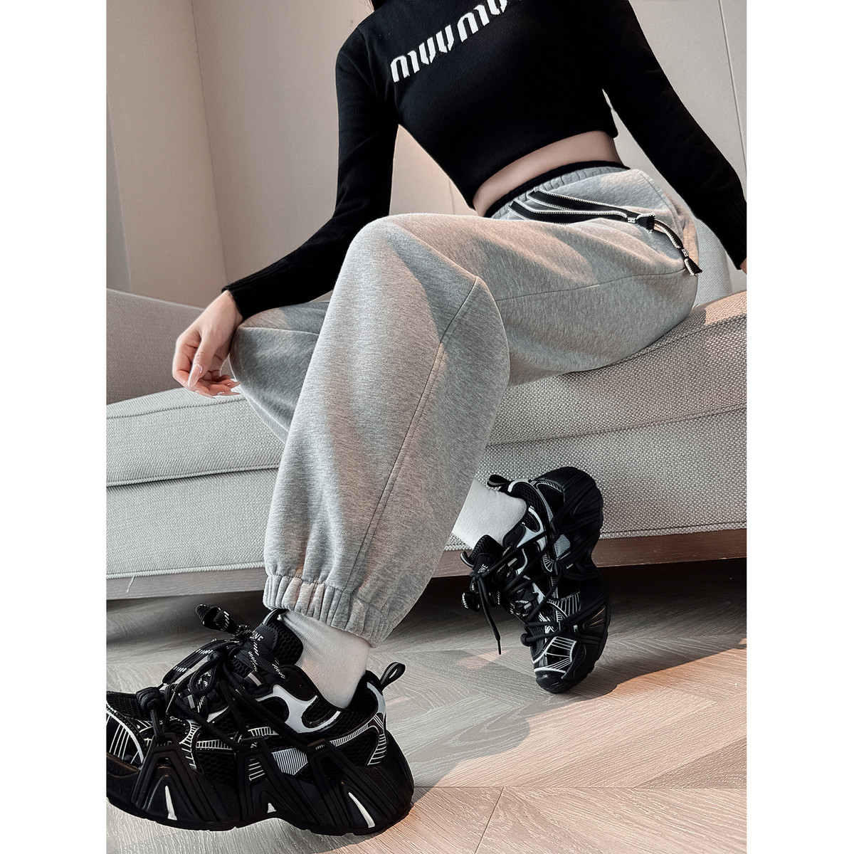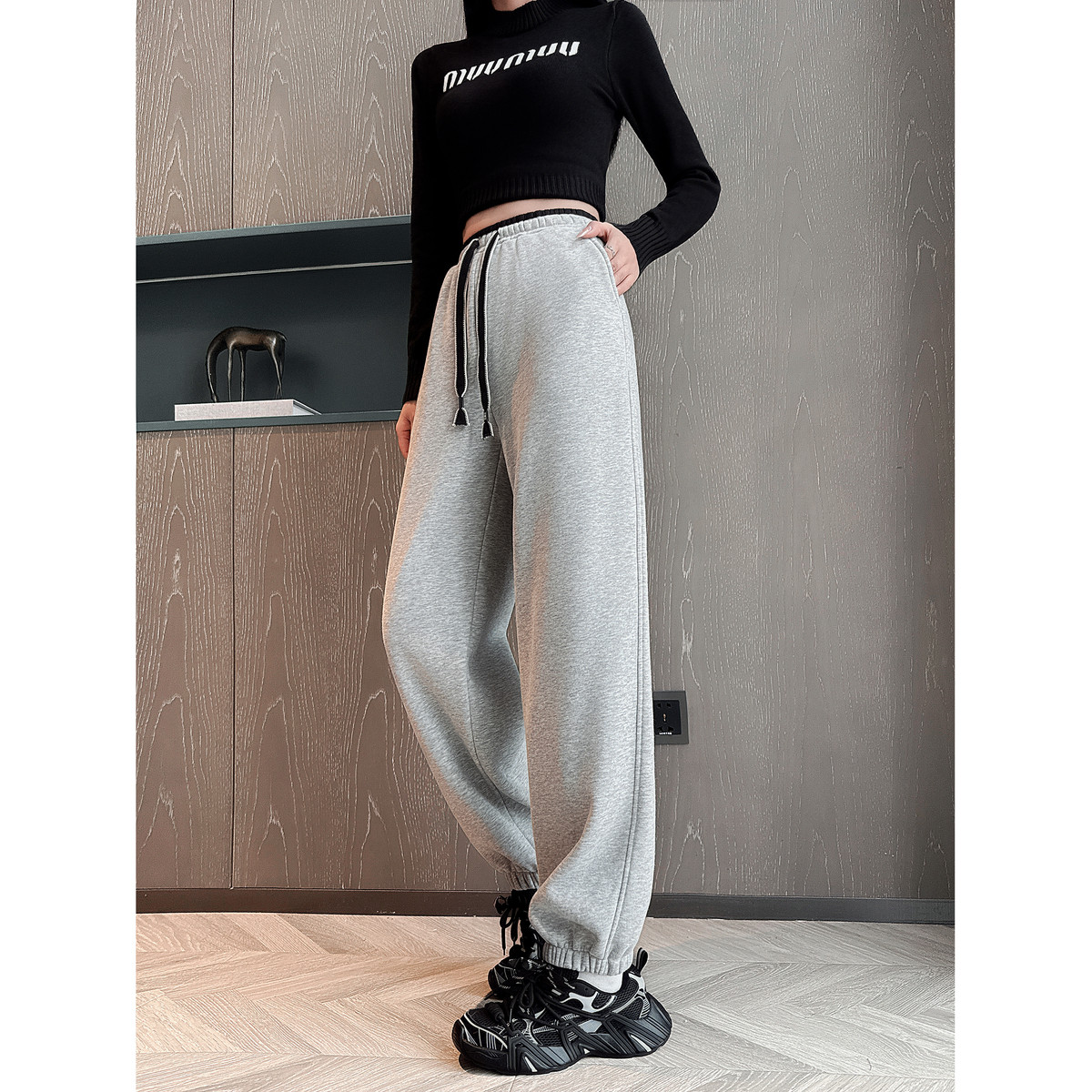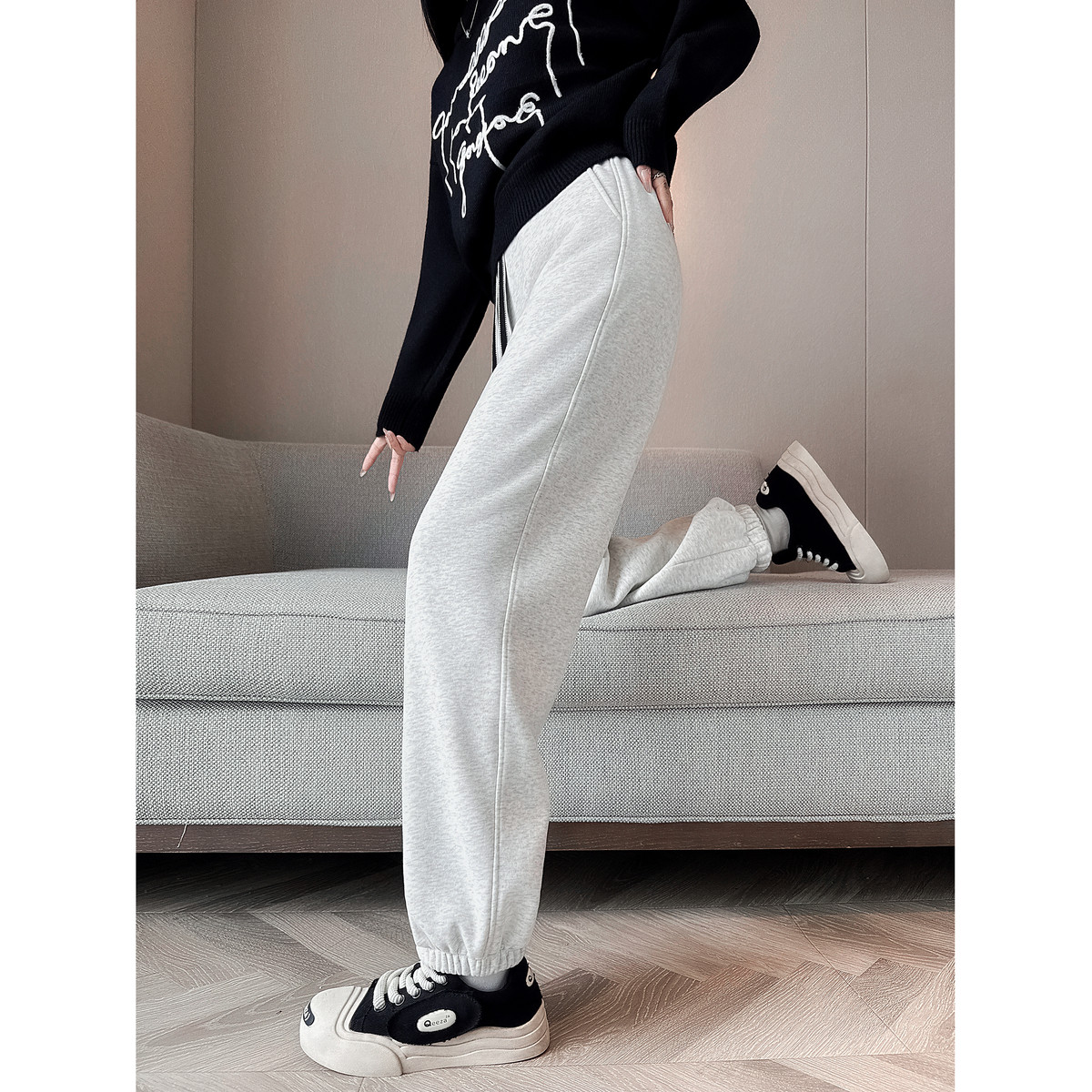 SIINSIIN加绒卫裤女2025新款阔腿运动裤休闲长裤冬季白色直筒裤子