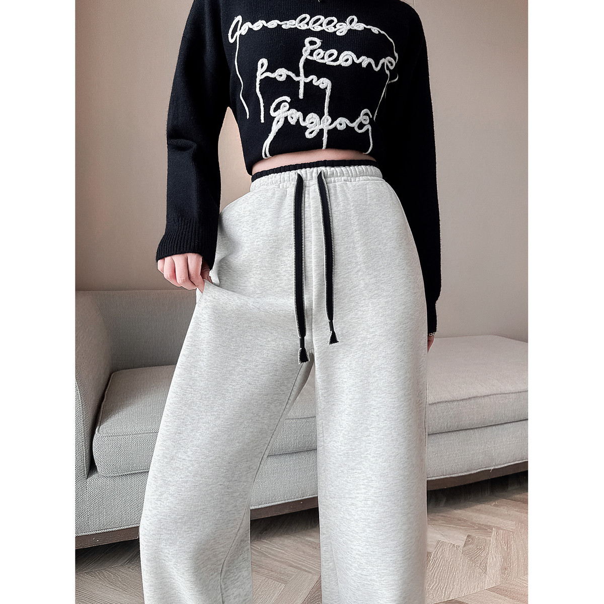 糯米裤女羊羔绒垂坠感软糯加绒加厚秋冬韩系慵懒松弛感阔腿裤TB