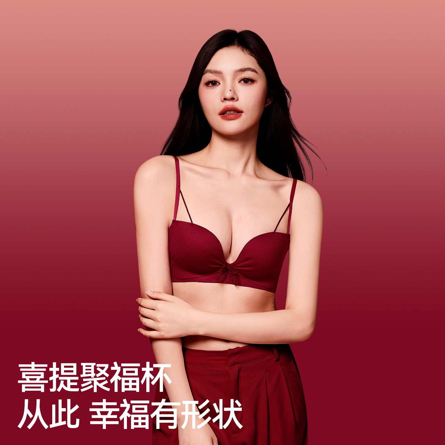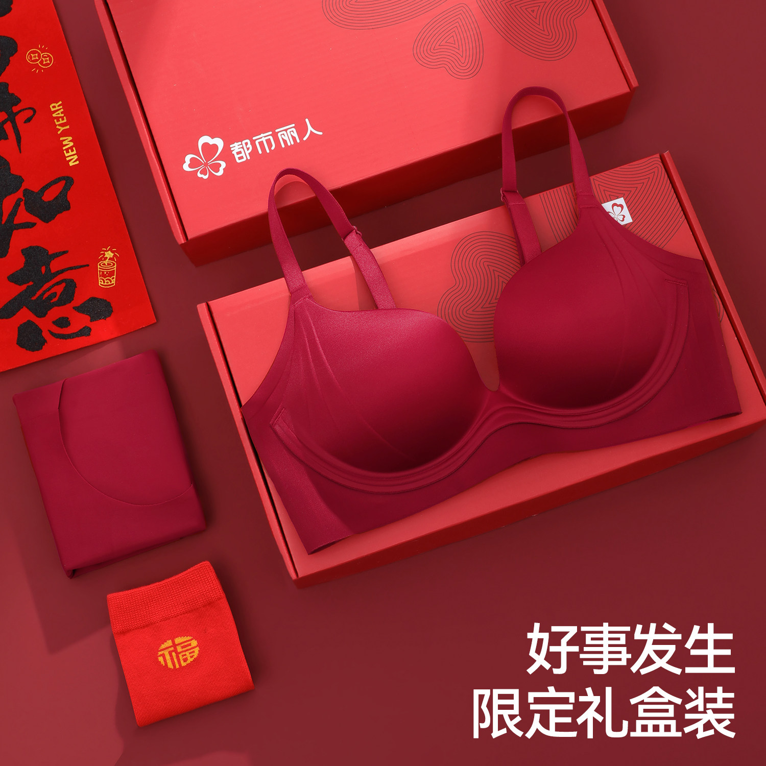 都市丽人红色内衣女小胸聚拢显大胸罩新年结婚本命年文胸礼盒套装