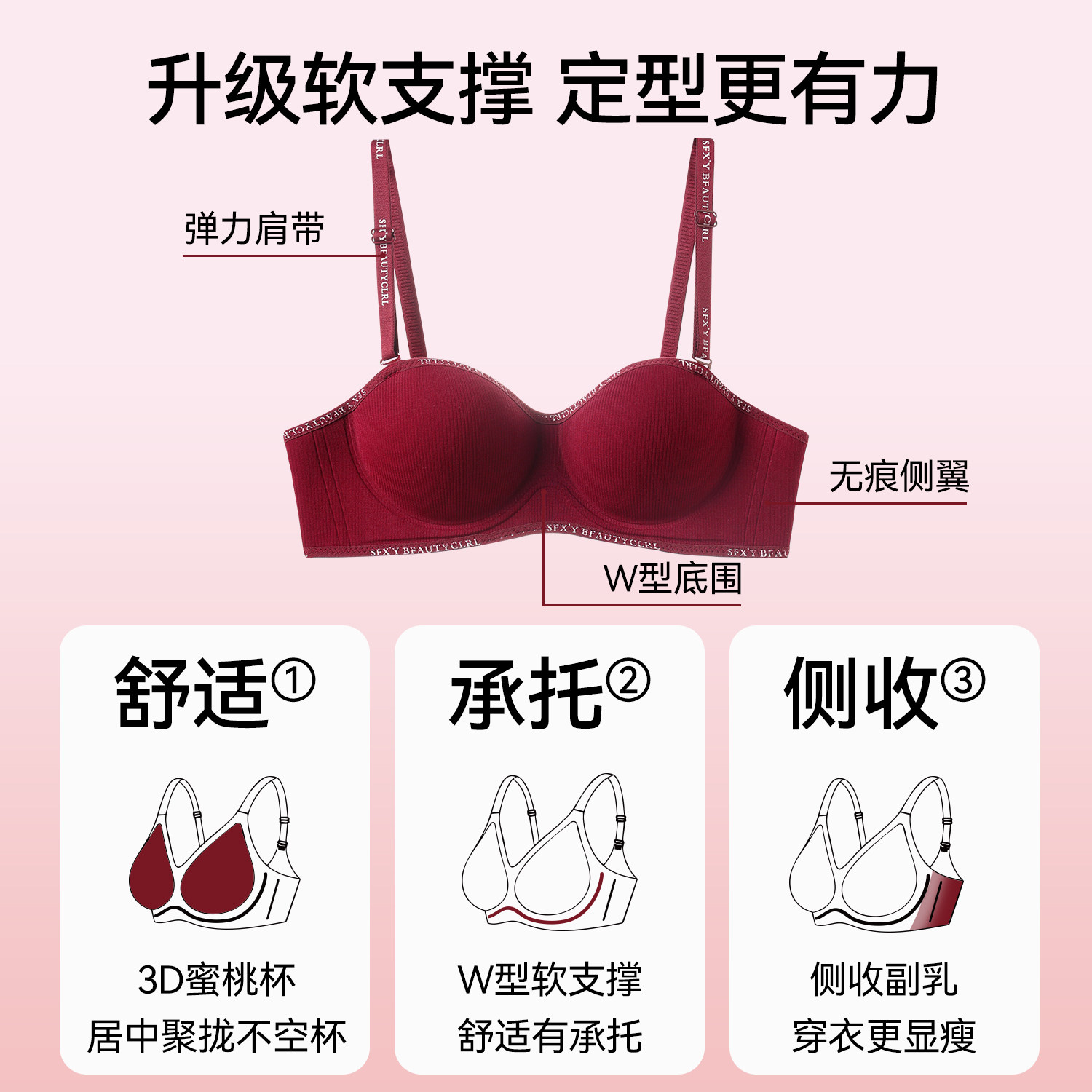 GOSO香蜜闺秀文胸女聚拢胸罩收副乳防下垂内衣轻盈舒适透气内衣