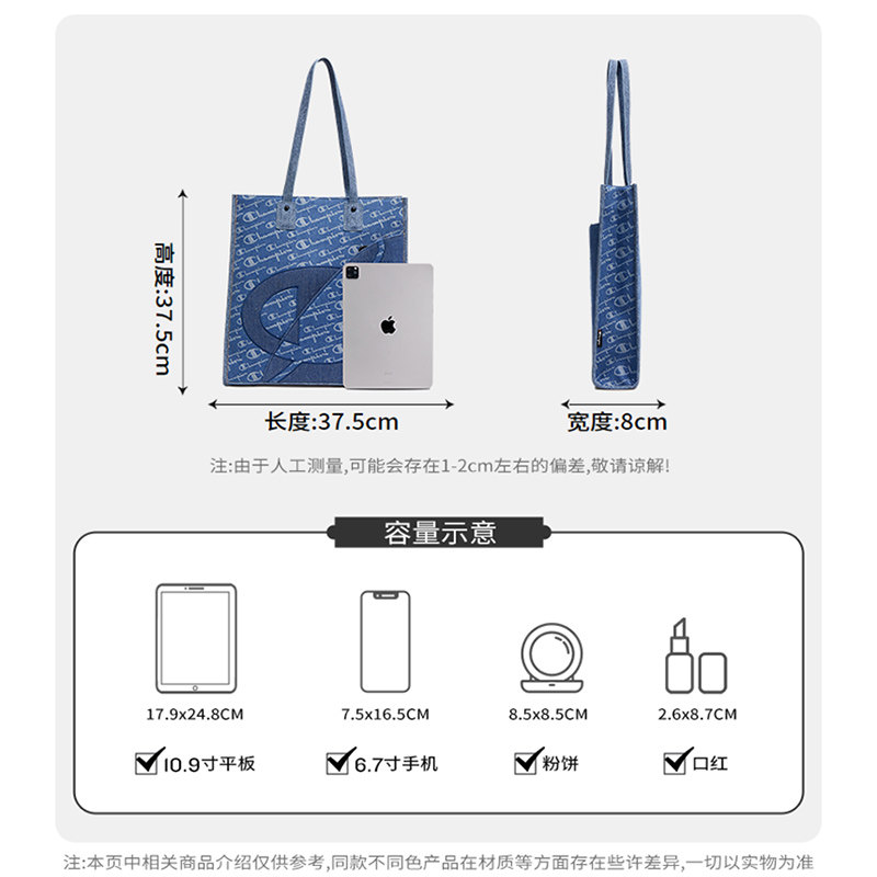 Champion冠军立体形托特包丹宁老花手提包大容量通勤女包电脑正品