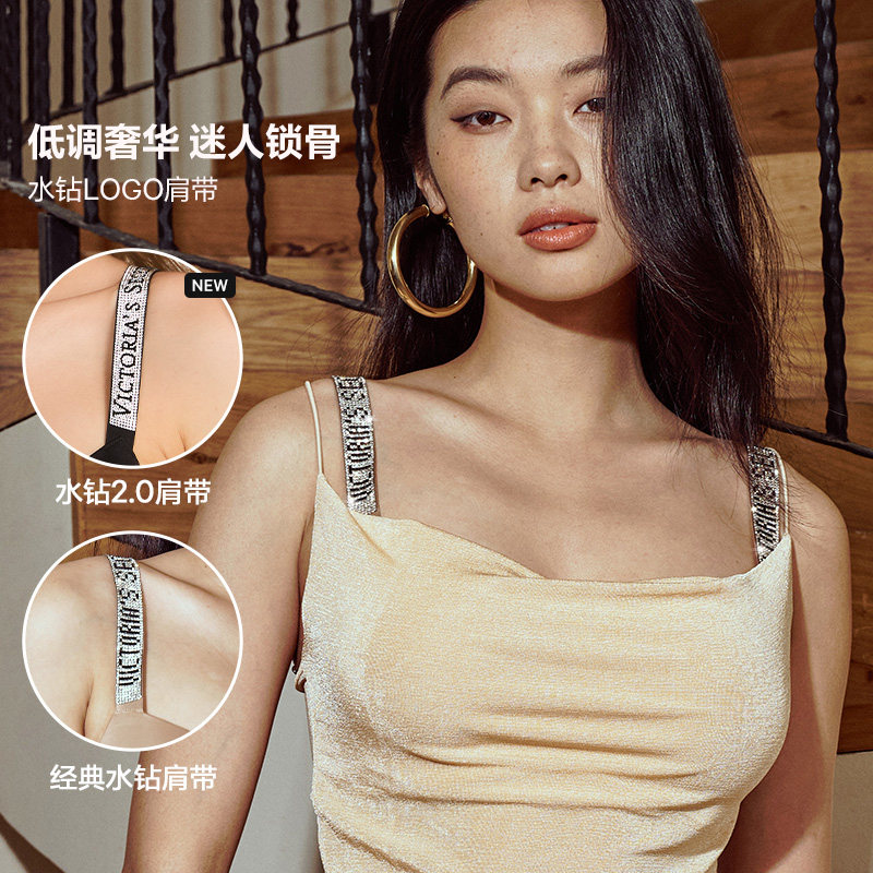 维密 闪钻LOGO字母经典肩带性感聚拢文胸内衣女夏
