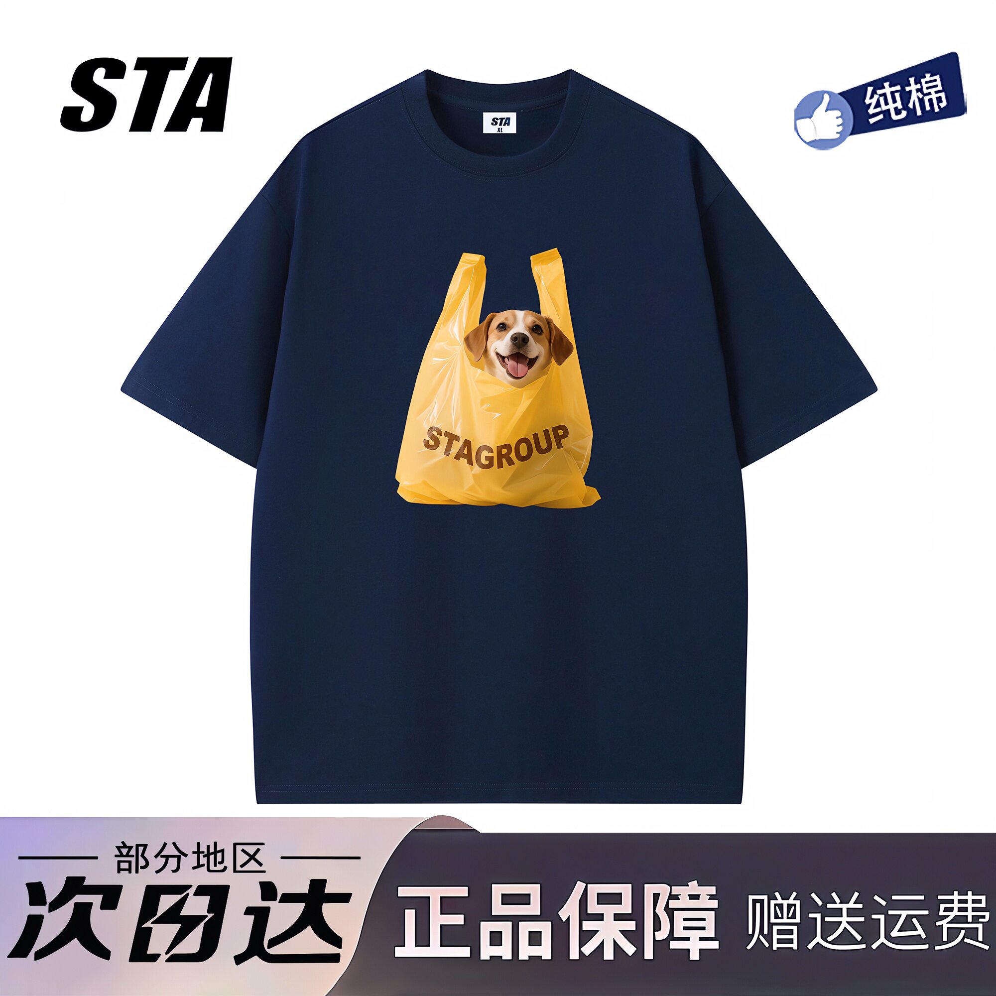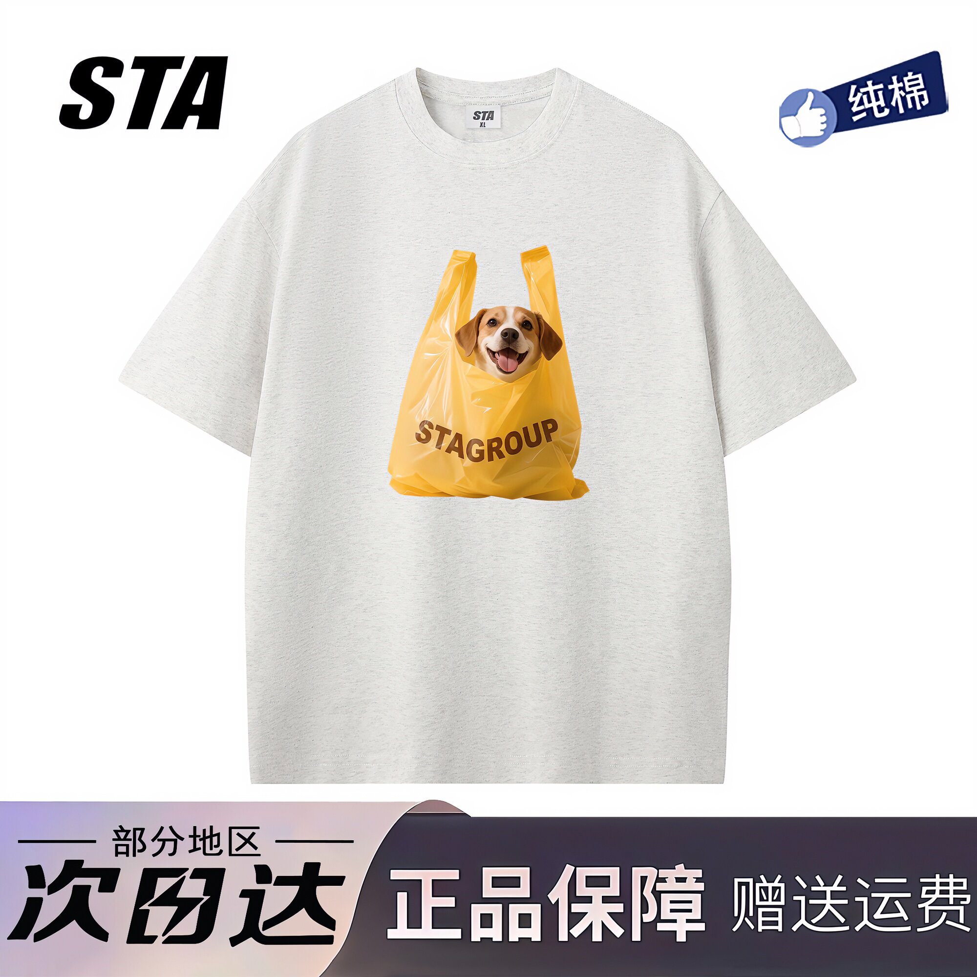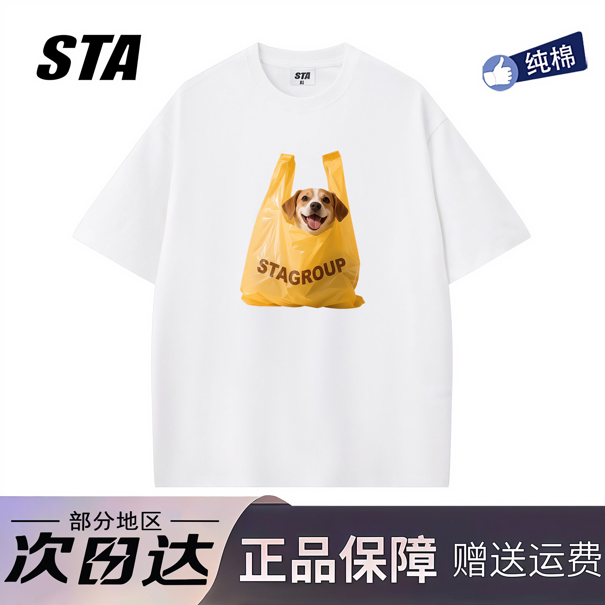 STA旗舰店美式趣味印花短袖男女复古高街重磅纯棉休闲宽松情侣t恤