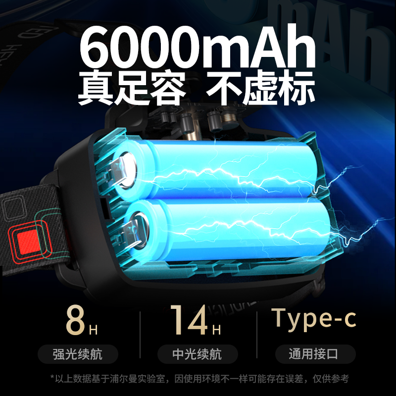 头灯强光超亮充电头戴式续航超长锂电户外夜钓鱼专用轻便感应矿灯