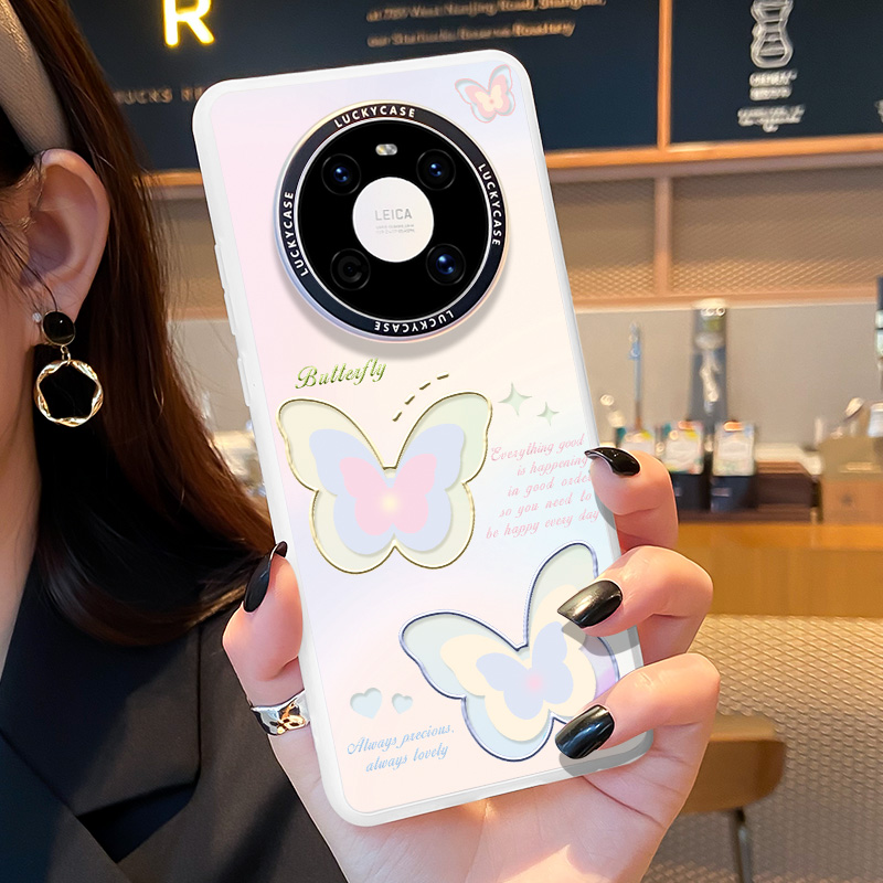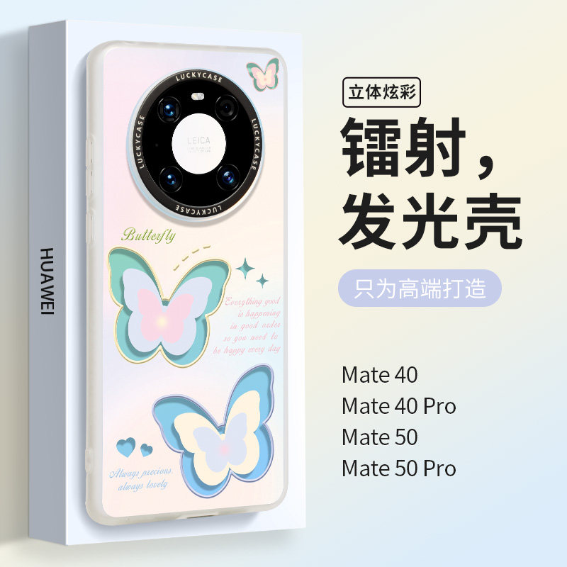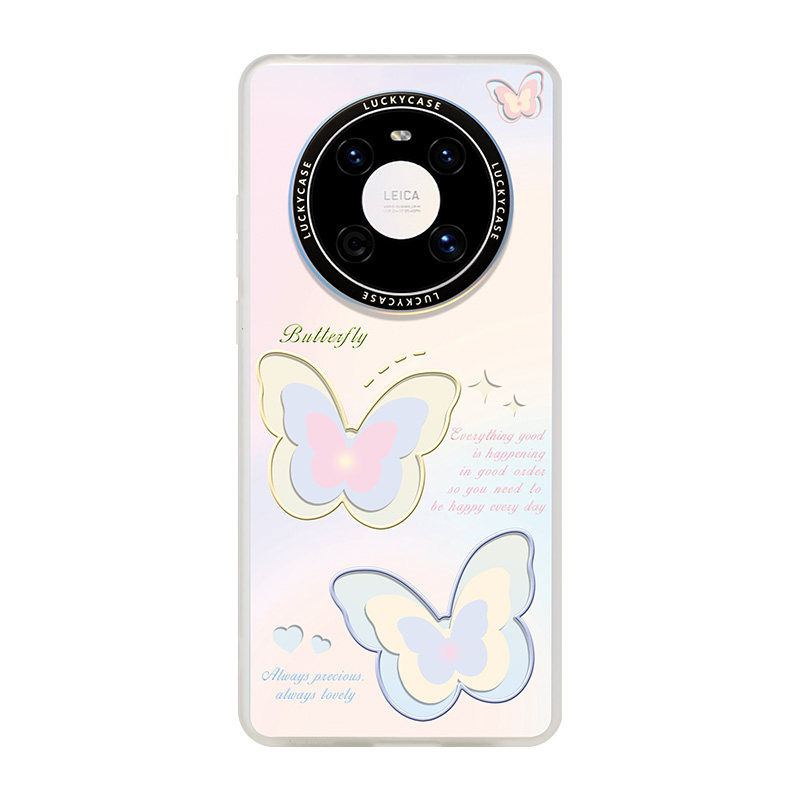 彩色蝴蝶适用华为mate60pro手机壳新款mate70pro镭射全包mate50套文艺mt40e防摔女款高级感30浮雕网红ins风+