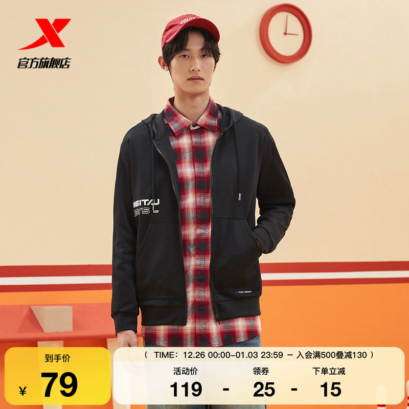 特步运动外套男款官方正品秋冬新款宽松夹克风衣连帽衫运动上衣