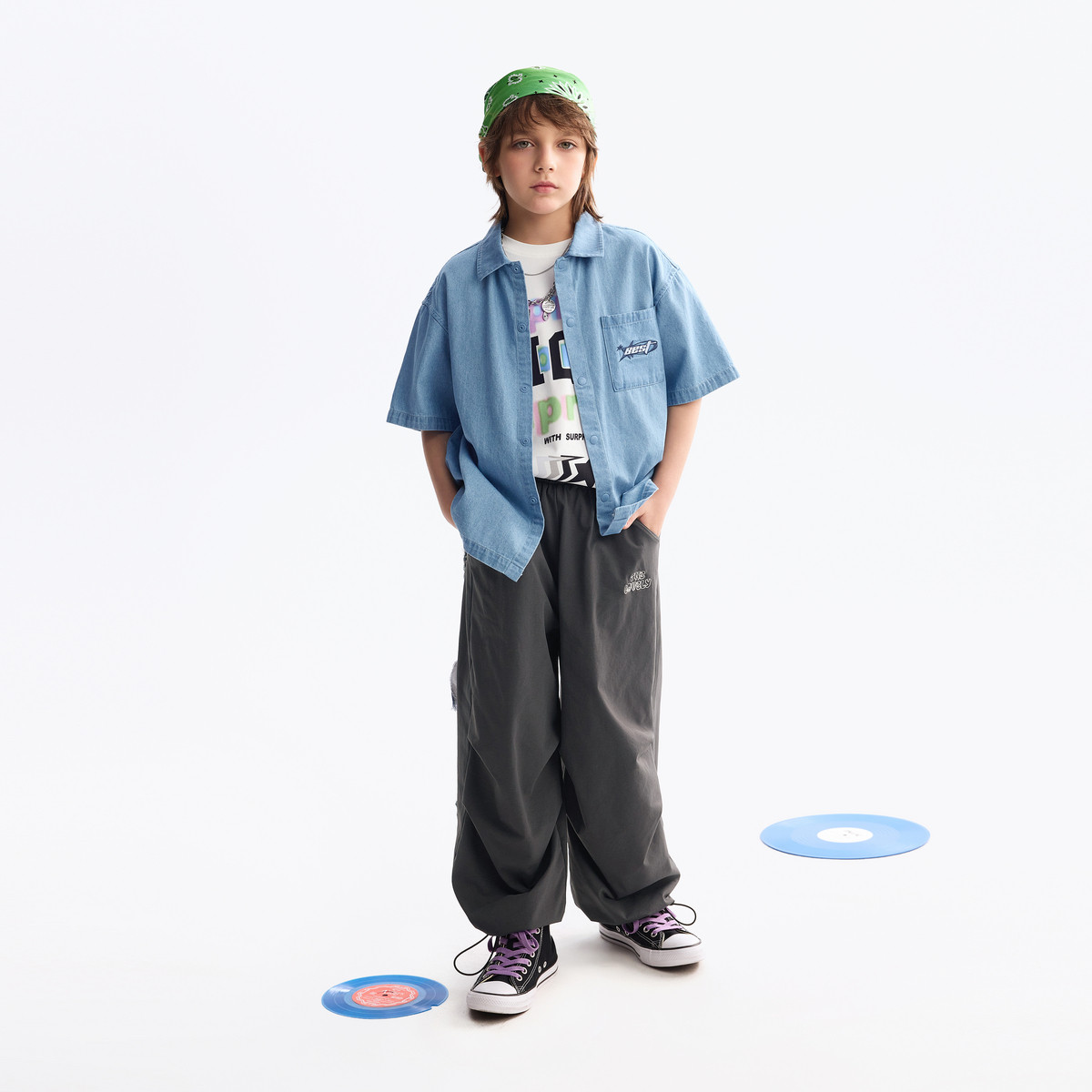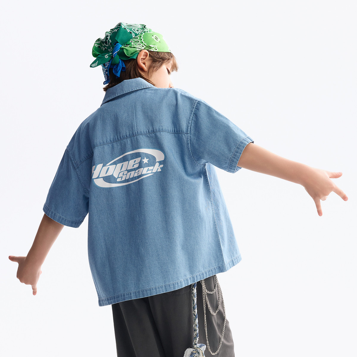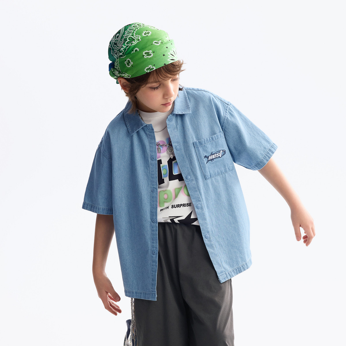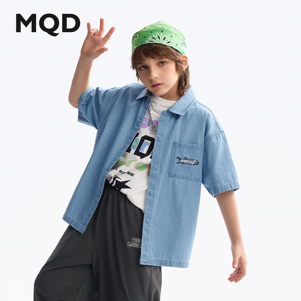 MQD童装男童短袖衬衫2025夏季新款儿童短袖T恤上衣牛仔衬衣外套