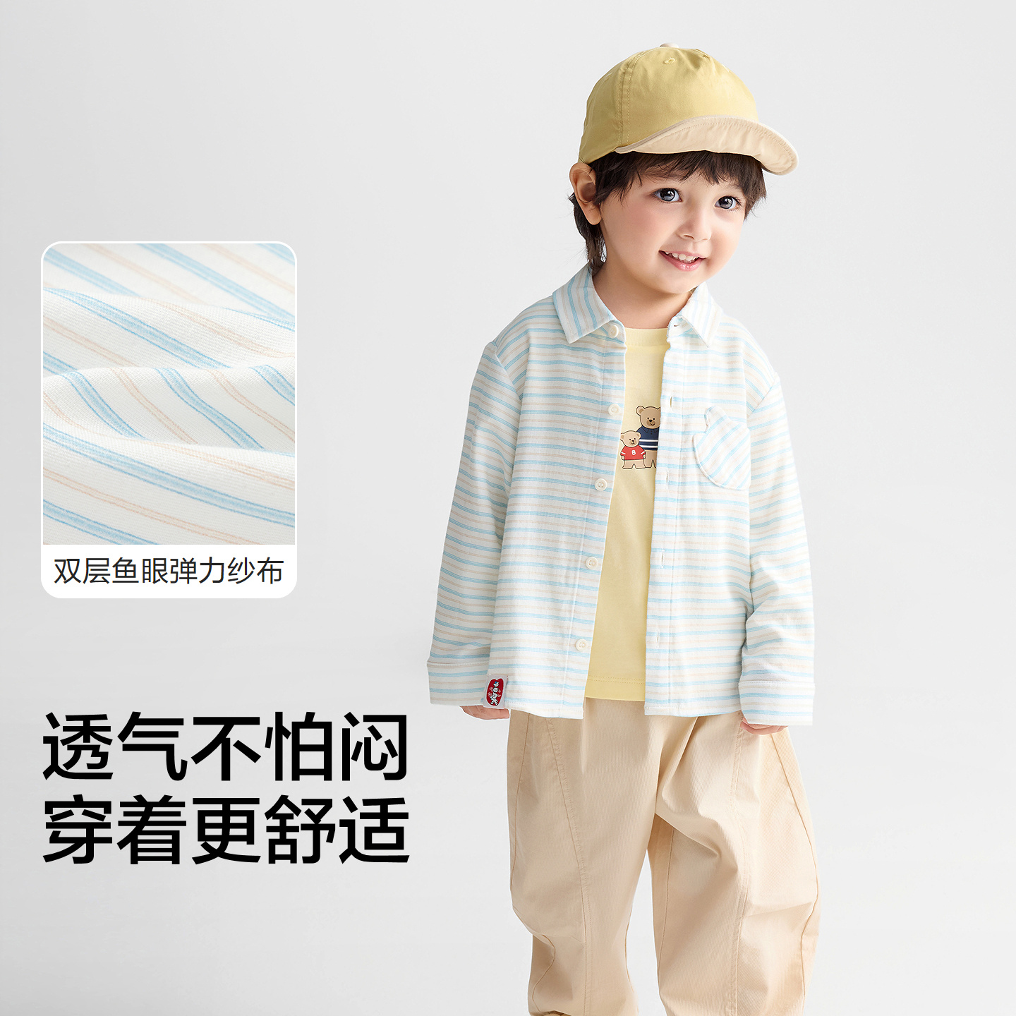 【商场同款】巴拉巴拉宝宝长袖衬衫男童上衣2025新款秋装可爱小熊