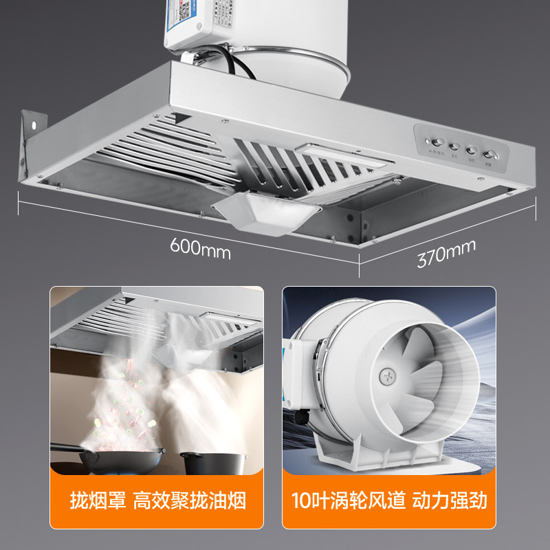 简易不锈钢烟机排气扇厨房家用抽风机强力静音大吸力抽油烟机小型