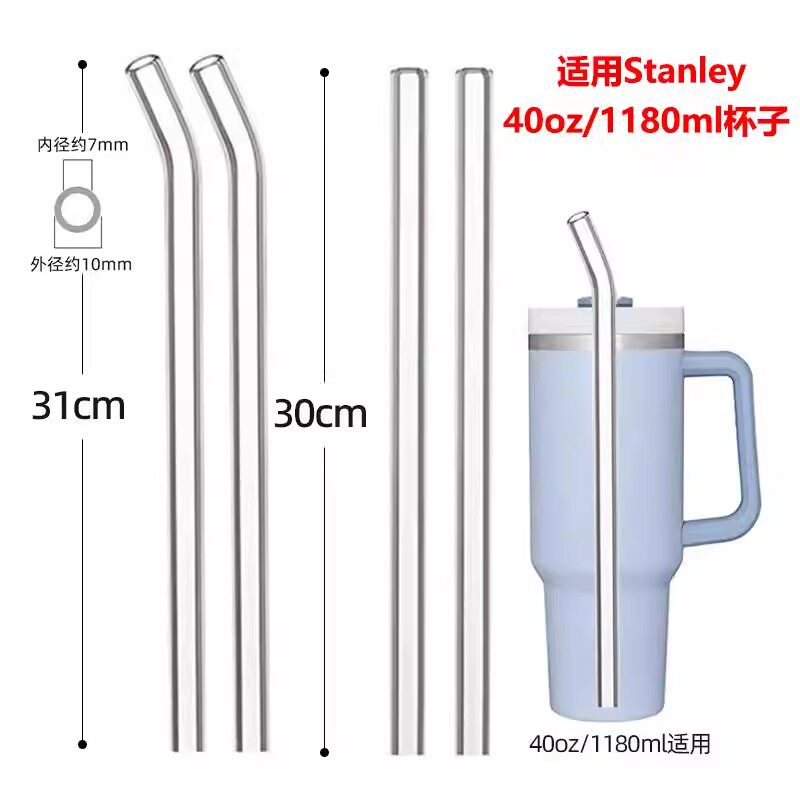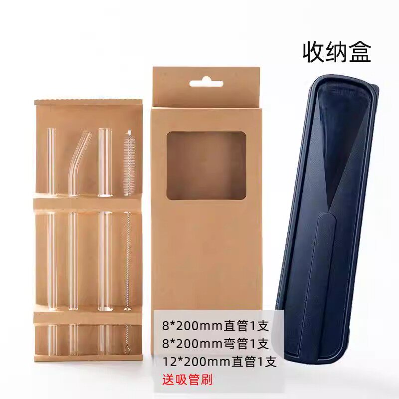 高硼硅透明玻璃吸管耐热套装防口红非一次性孕妇果汁饮管加长喝水