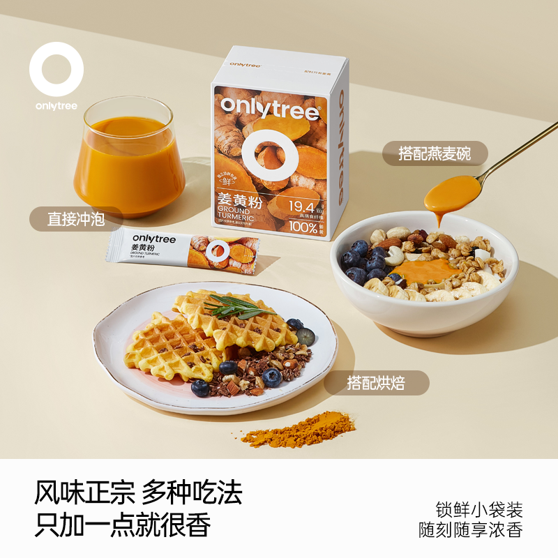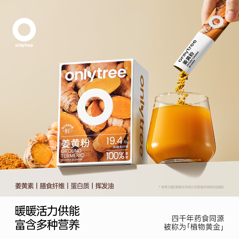 onlytree纯姜黄粉天然黄肉桂粉姜黄奶粉冲饮姜黄茶姜汁无添加食用