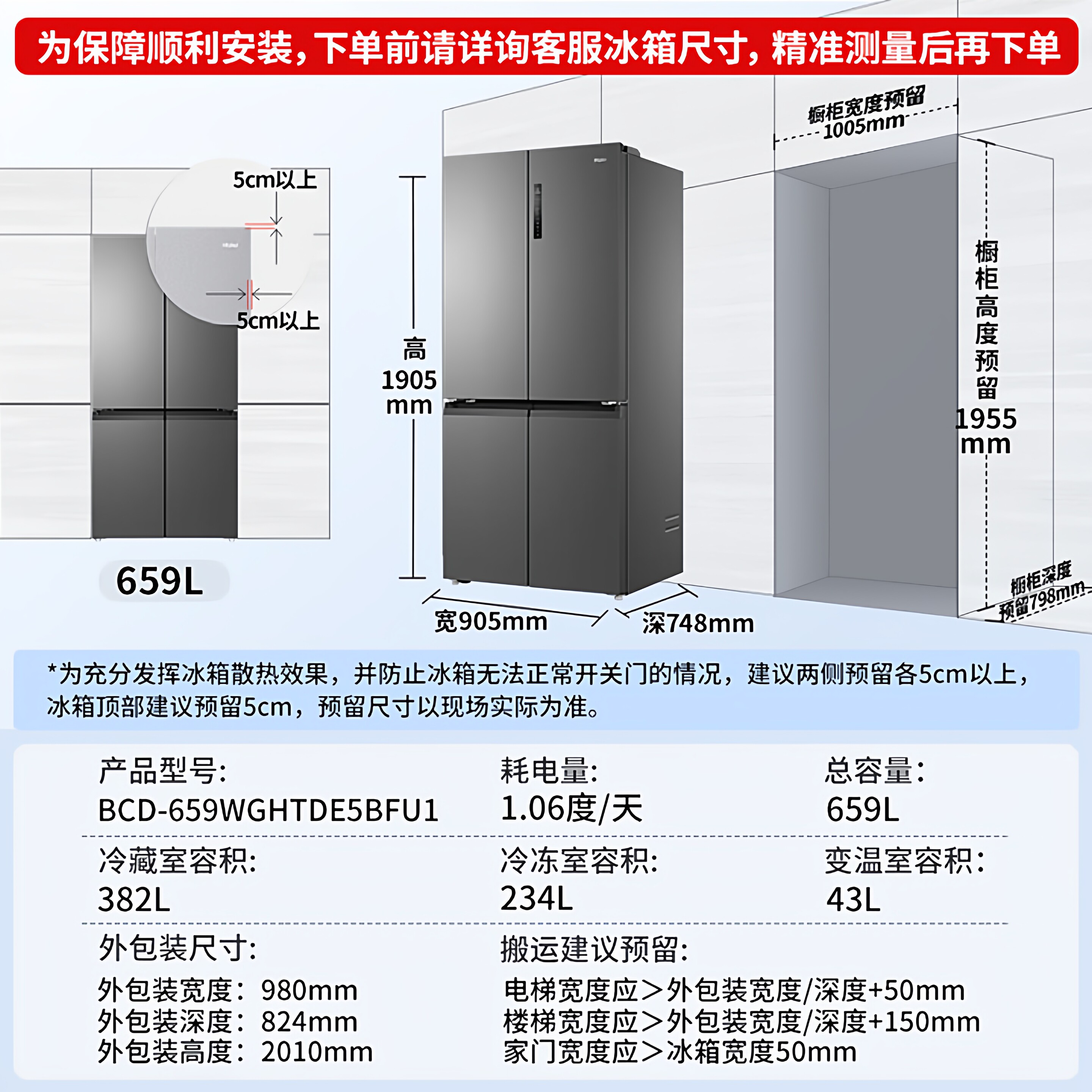 政府换新补贴海尔统帅618L双开对开门大容量无霜一级变频家用冰箱