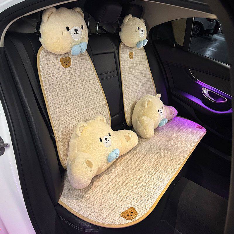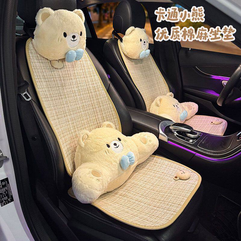 透气棉麻车载棉麻夏季座椅汽车可爱座垫卡通通用四季通用透气舒适