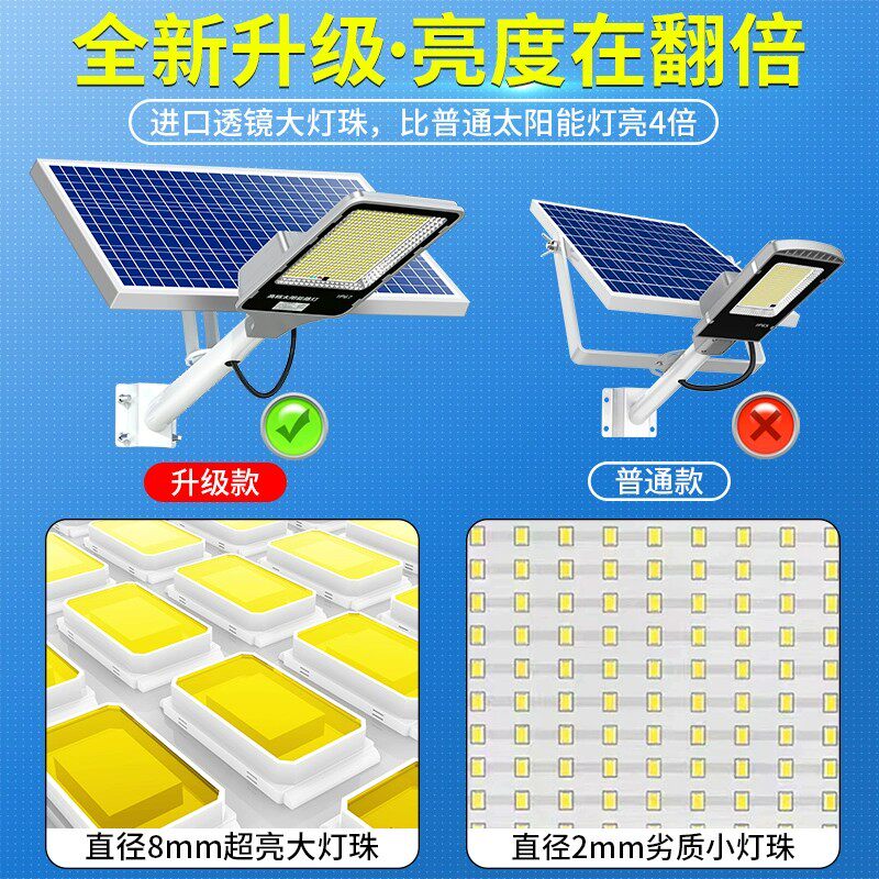 品牌太阳能路灯户外灯庭院灯led超亮新款大功率家用防水带灯杆