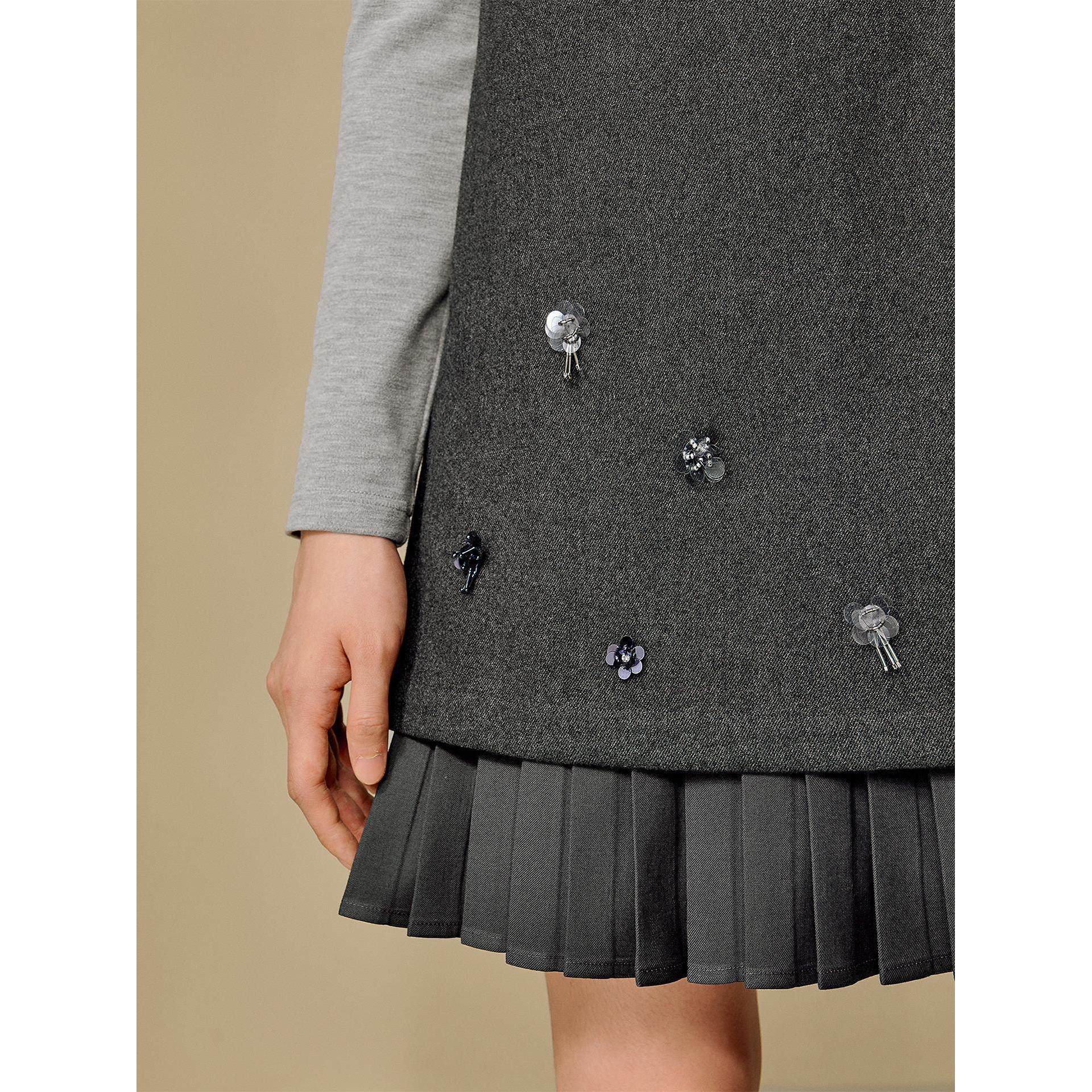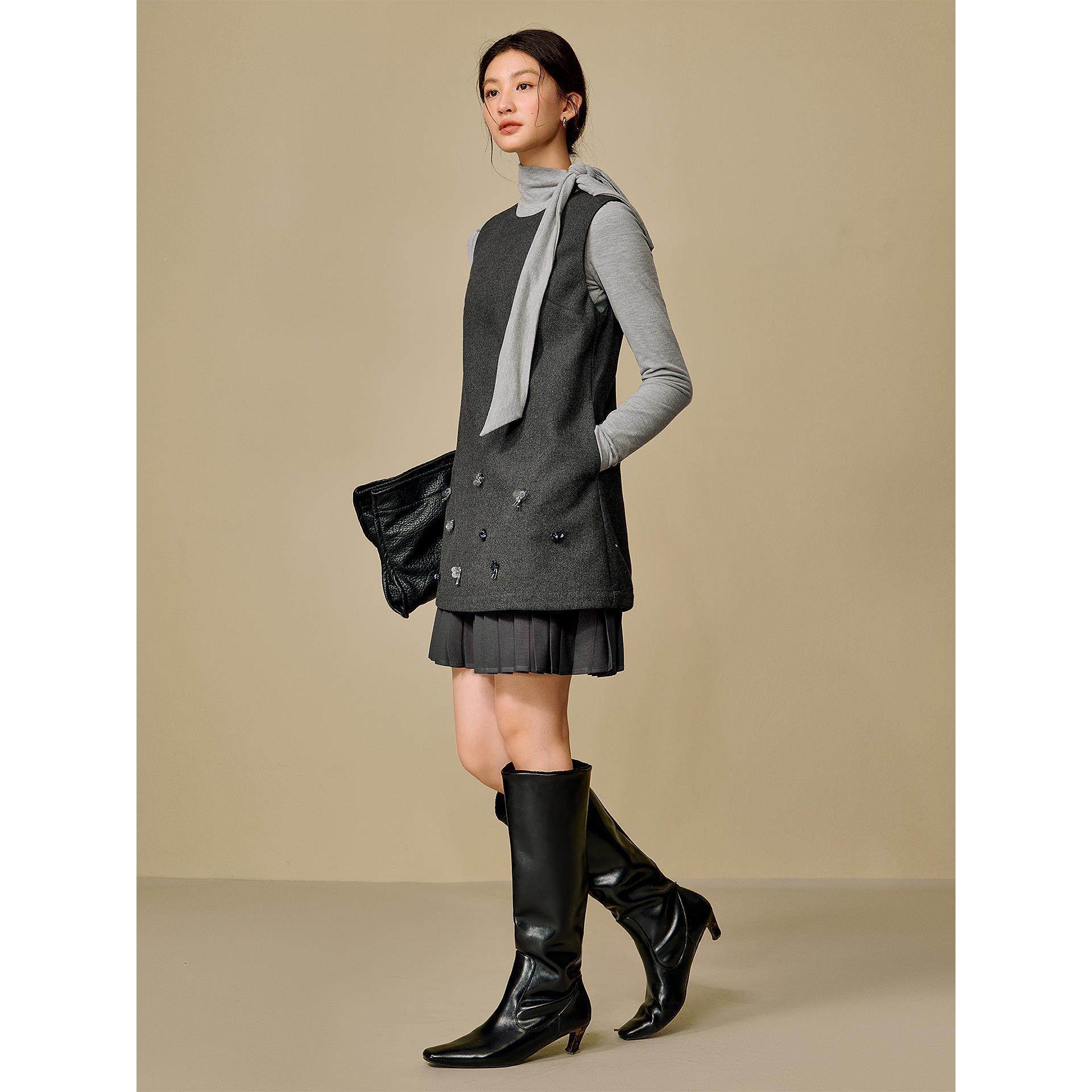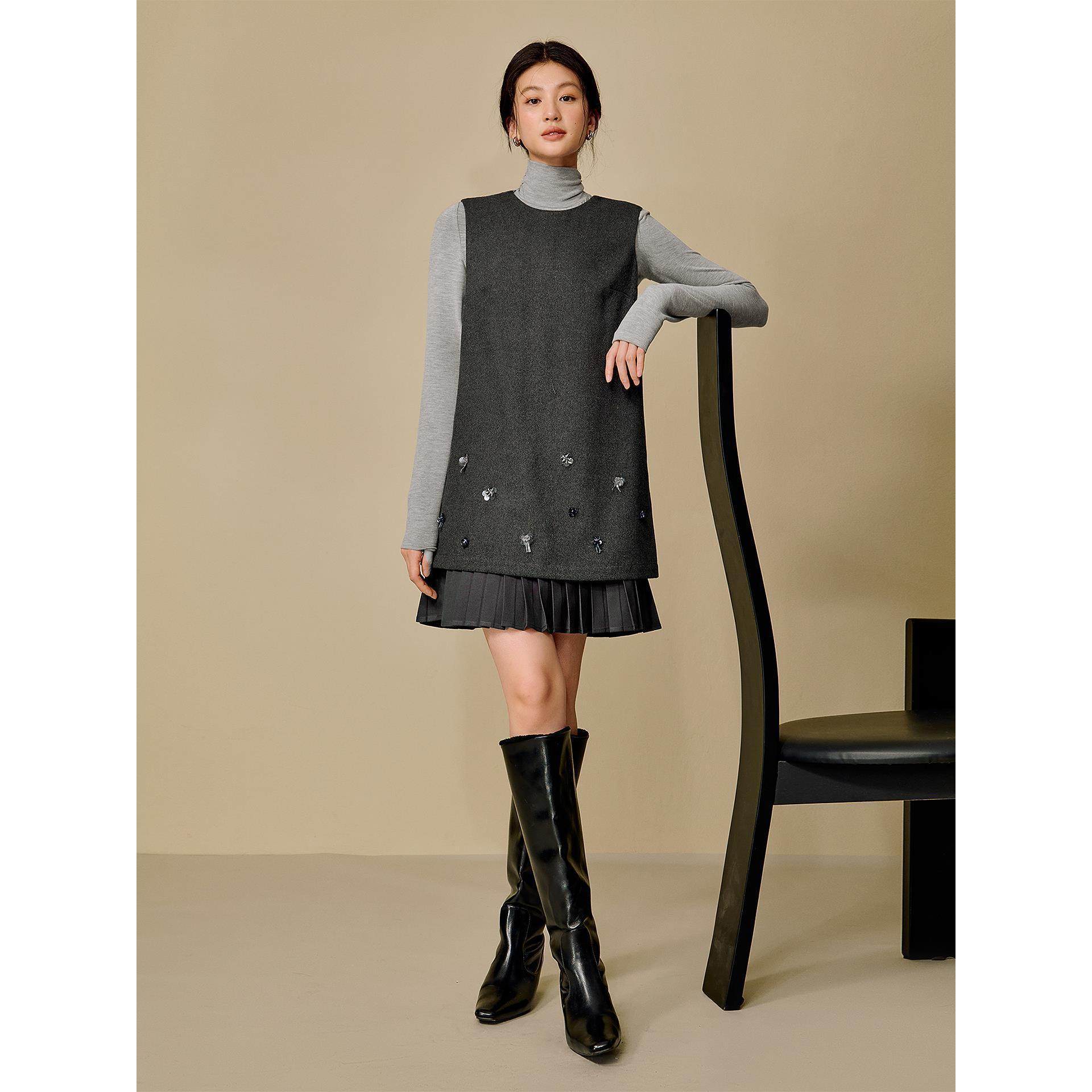 茵家格雷系立体钉珠连衣裙女2025年冬季新款拼接圆领无袖背心长裙