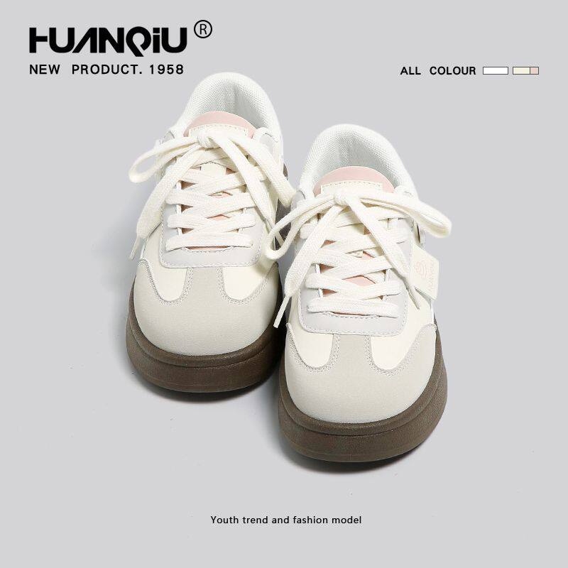环球女鞋多巴胺德训鞋女款百搭学生鞋子软底休闲鞋女板鞋圆头白色