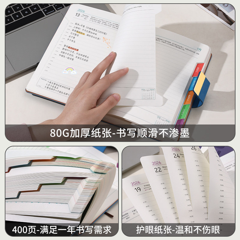 大容量日程本国潮记事本高效打卡计划本一本用整年2026年新款创意国风加厚笔记本多功能检索超厚400页手账本