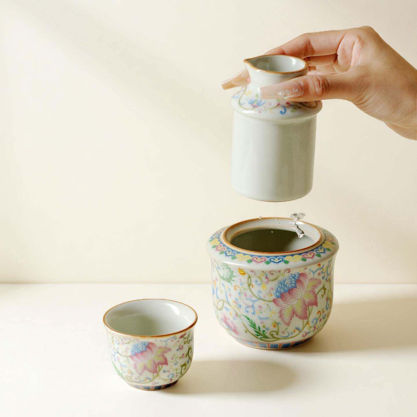 墨己汝窑温酒器粉彩缠枝莲陶瓷温酒壶家用烫酒热酒壶黄酒清酒具